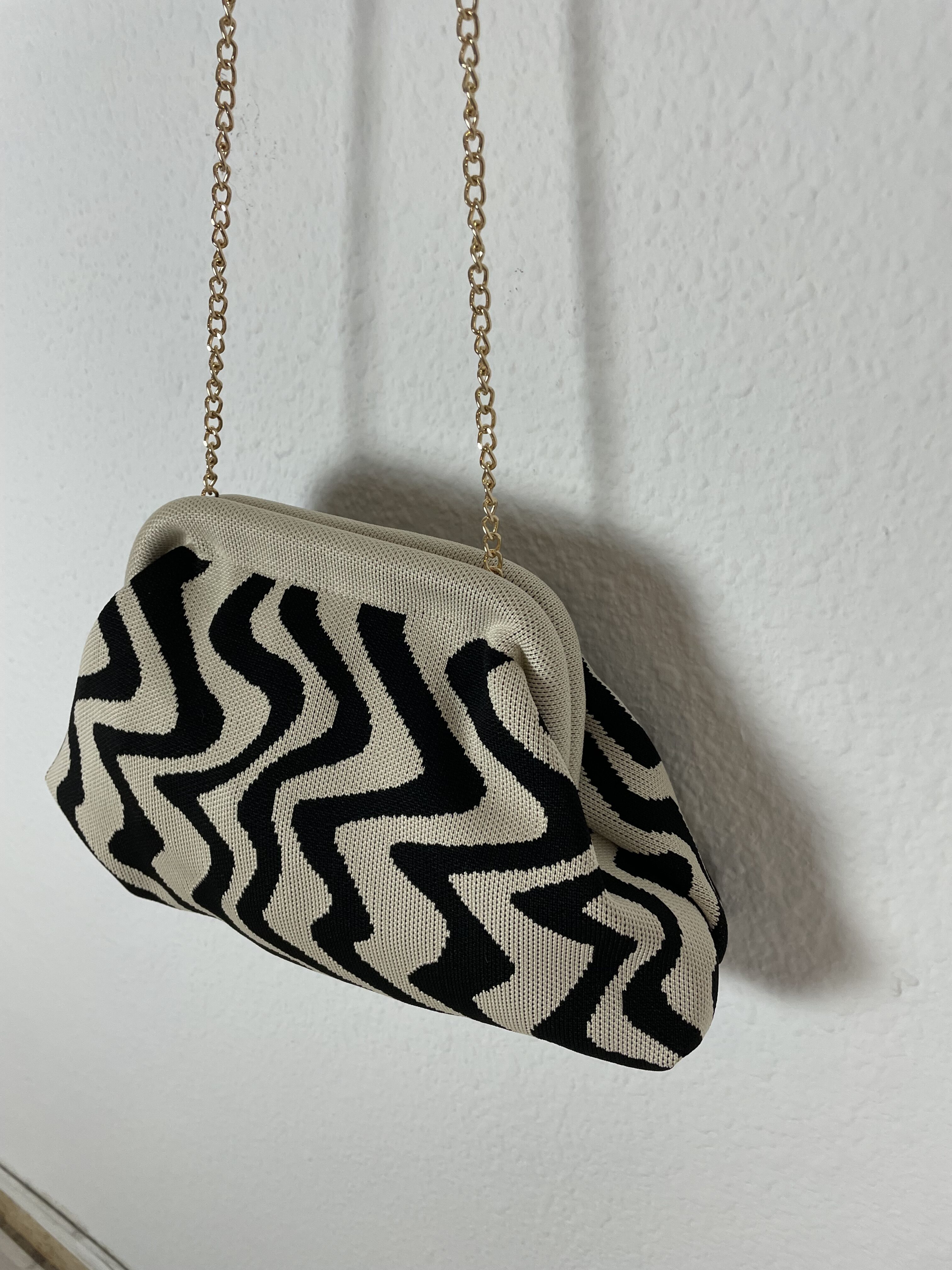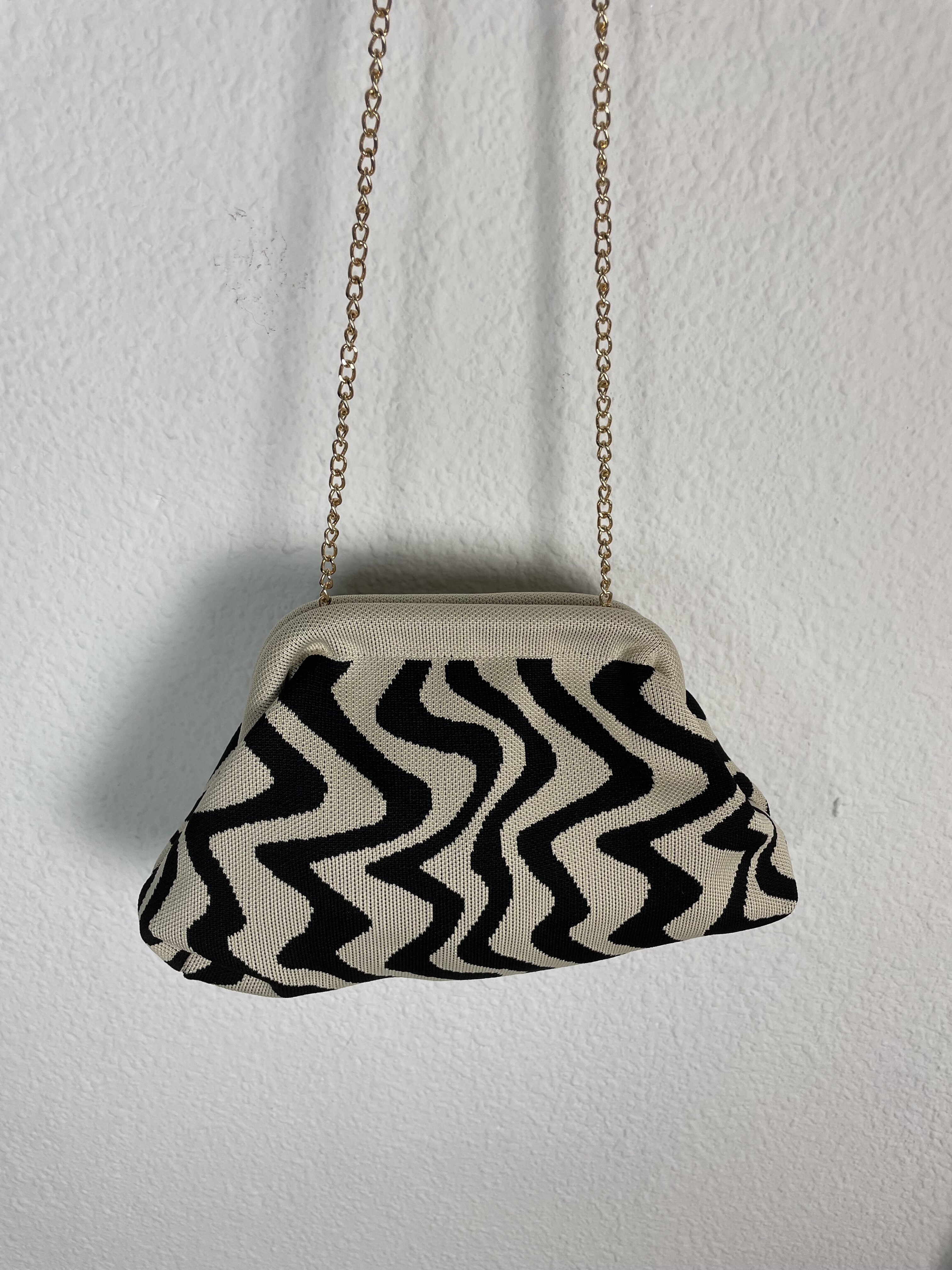 BOLSO TELA ZIG ZAG BEIG Y NEGRO