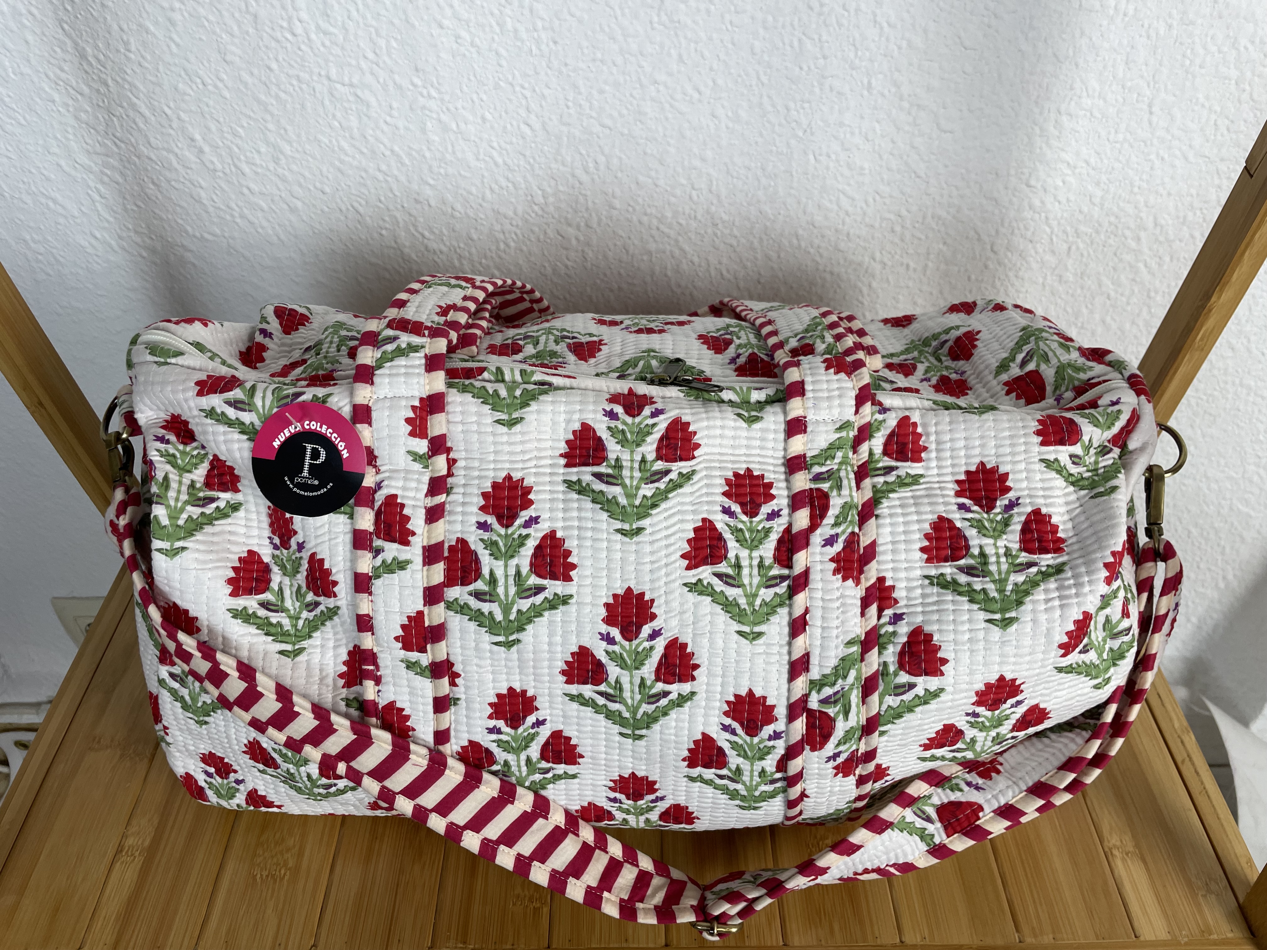 BOLSO VIAJE ESTAMPADO ROJO Y VERDE