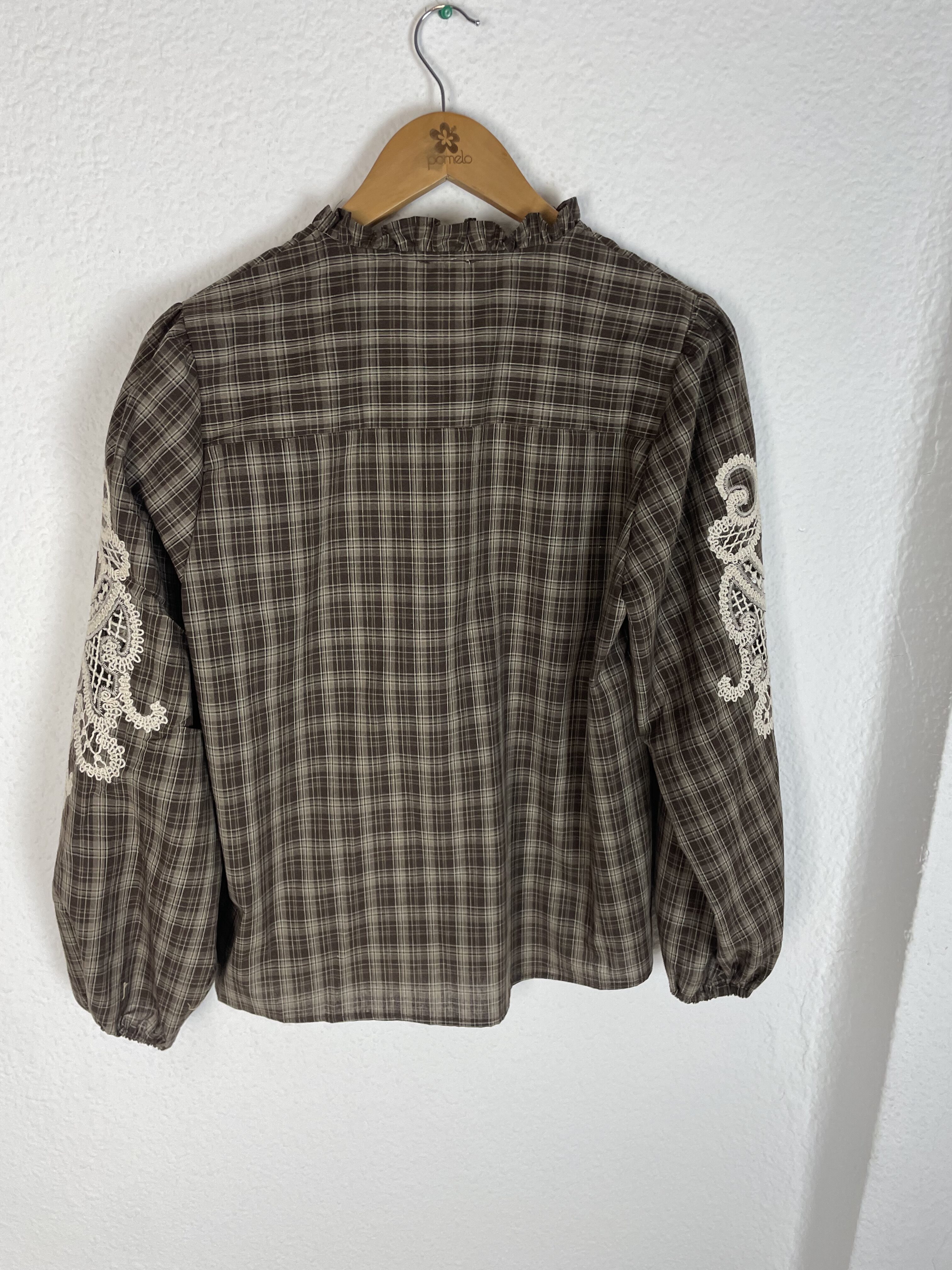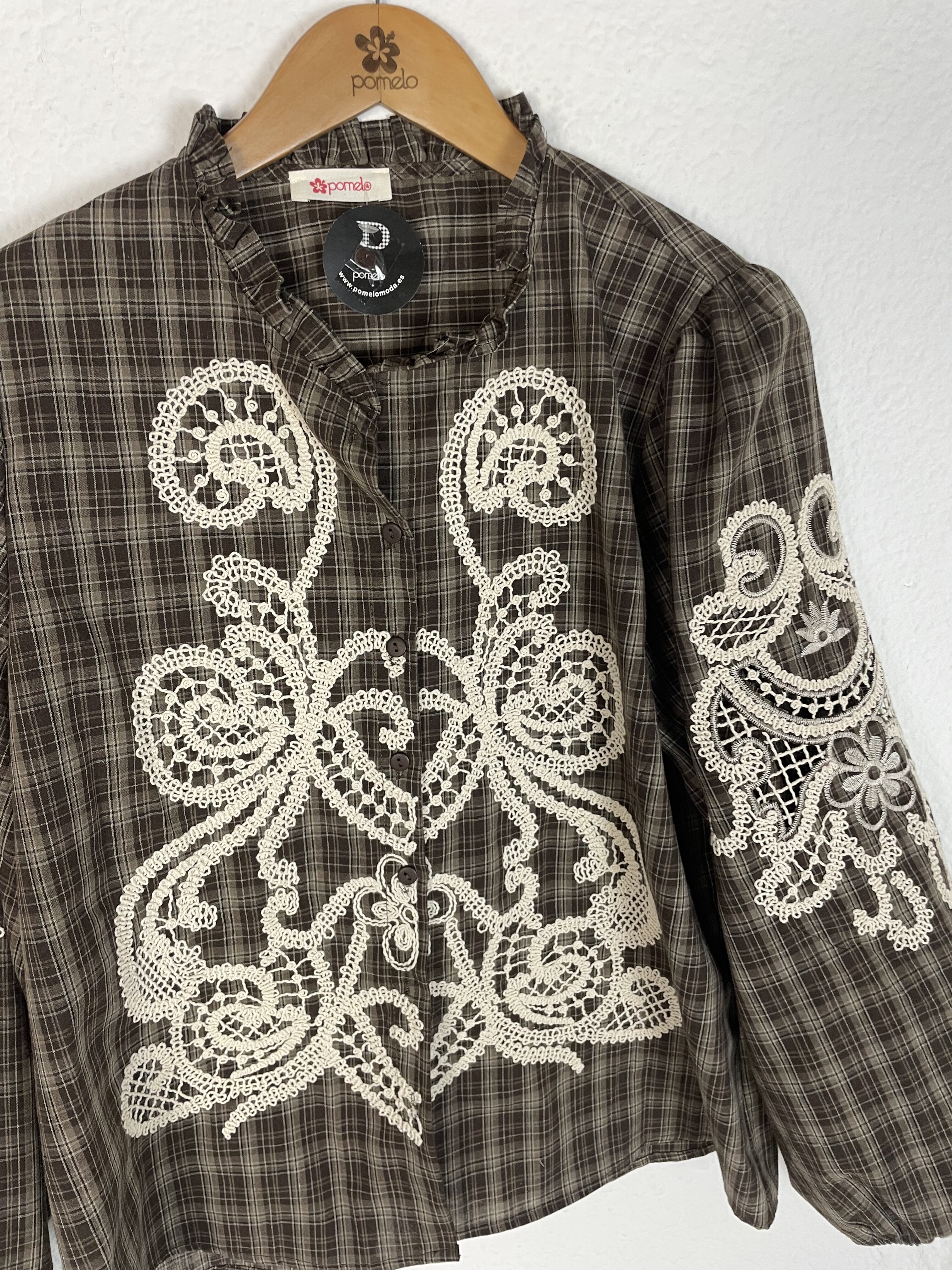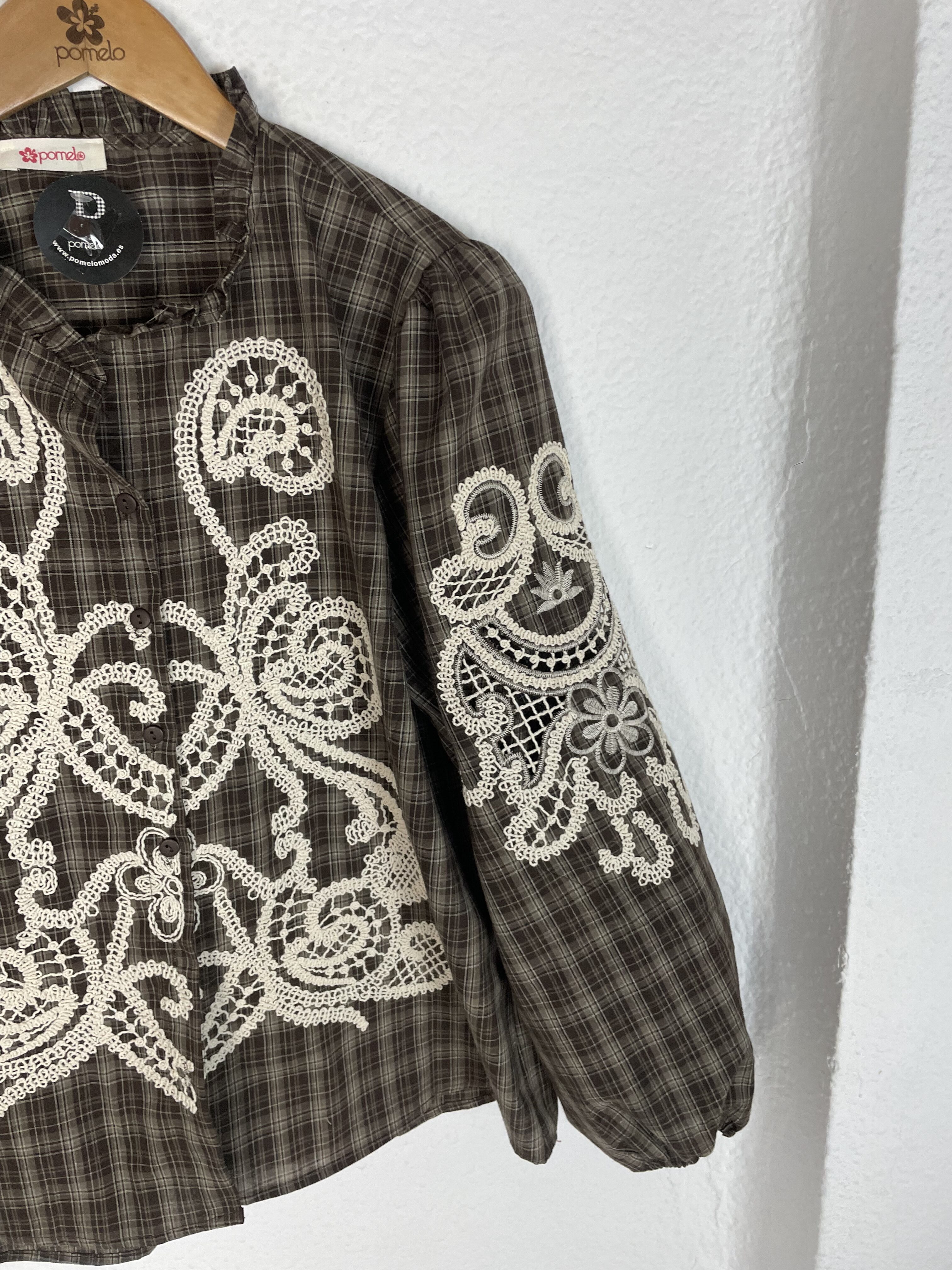 CAMISA CUADROS DETALLES BORDADOS BEIG