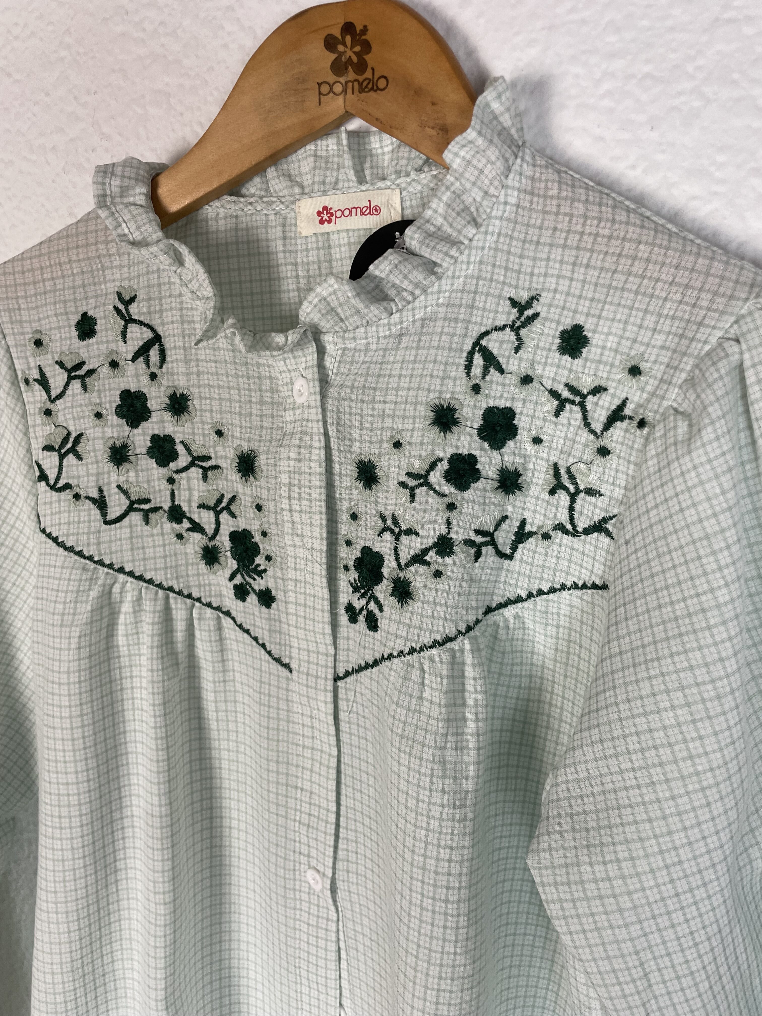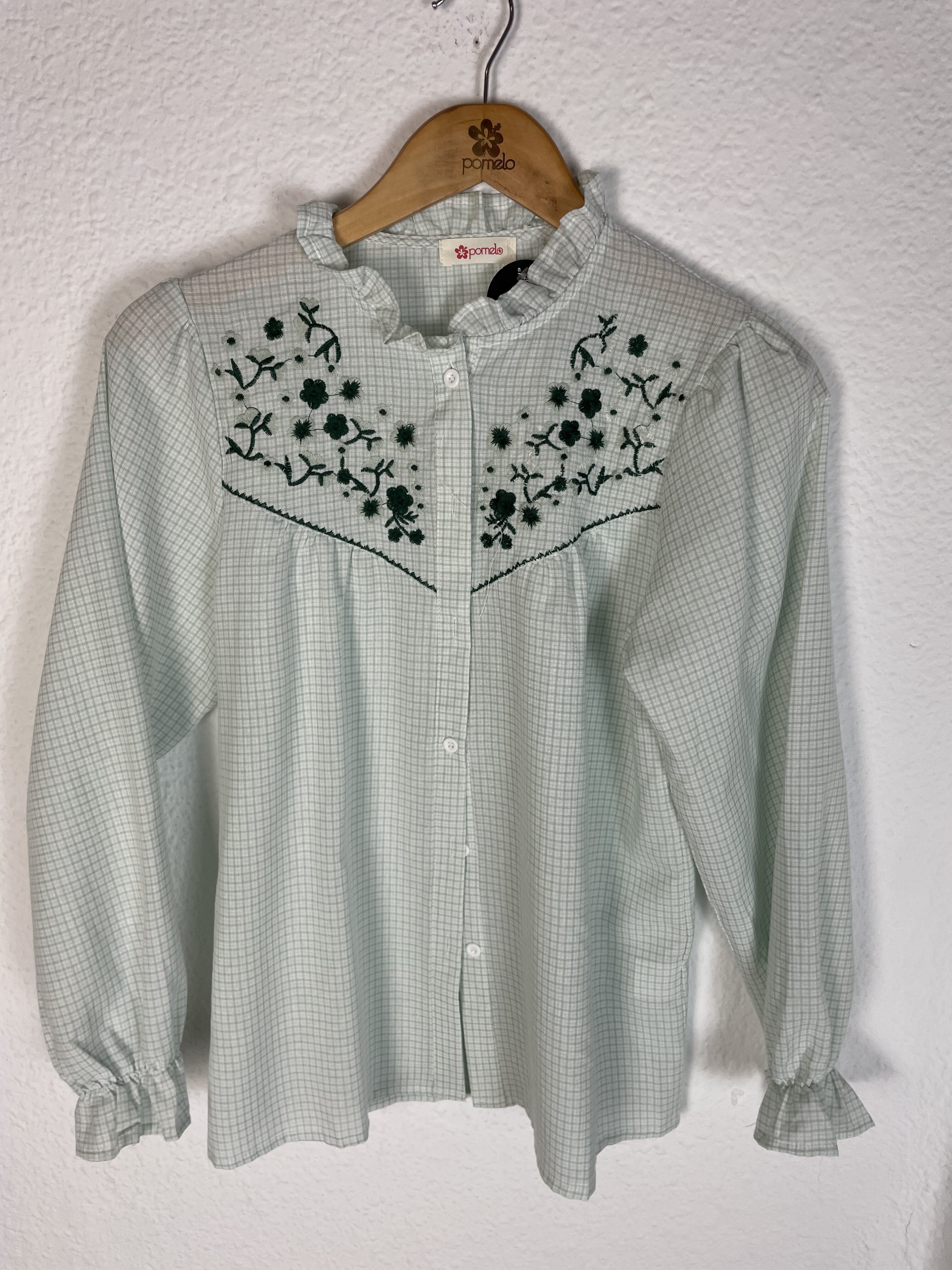 CAMISA CUADROS VERDE BORDADA EN TONOS VERDE