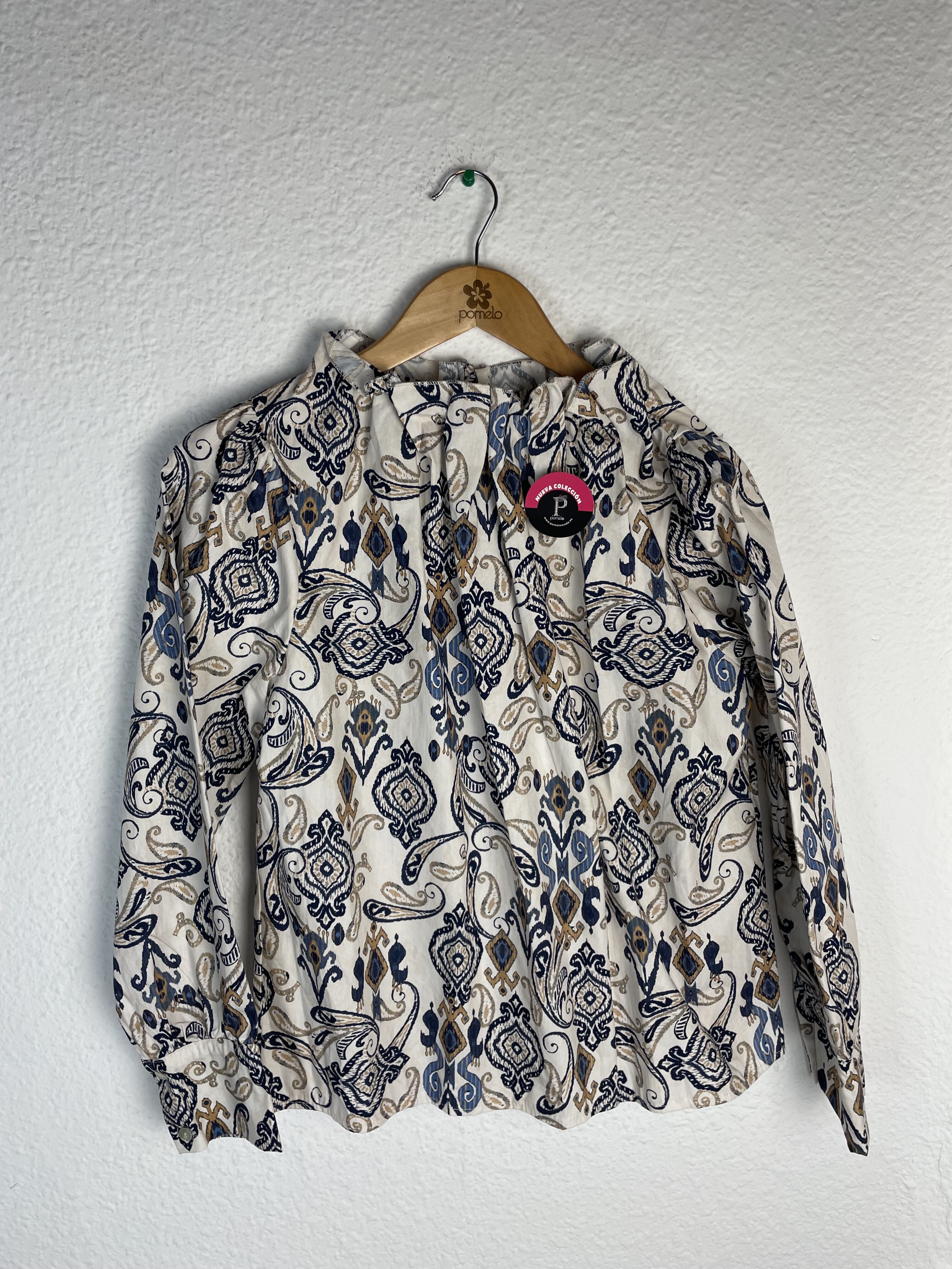 CAMISA ESTAMPADA CUELLO SUBIDO TONOS AZULES