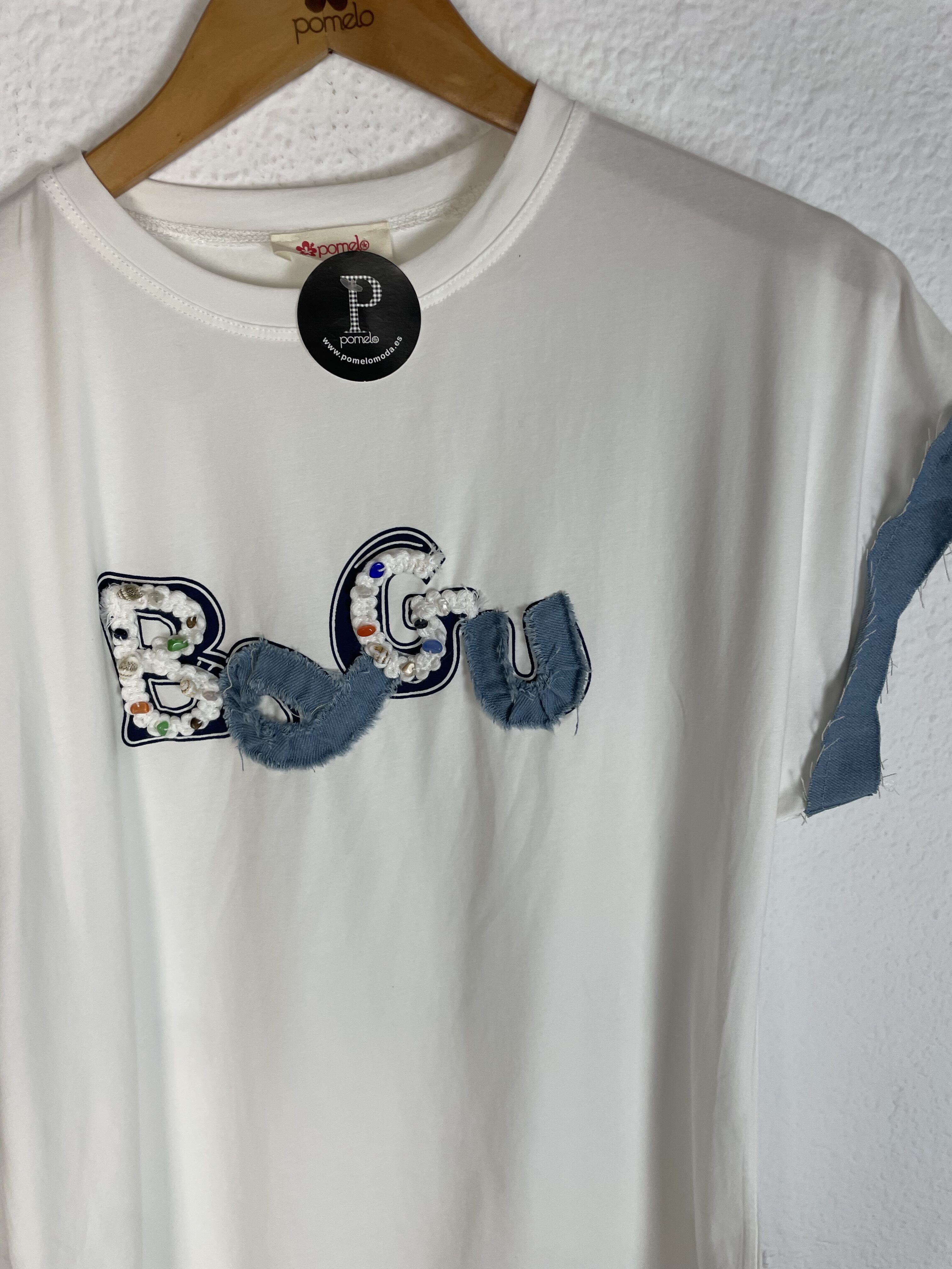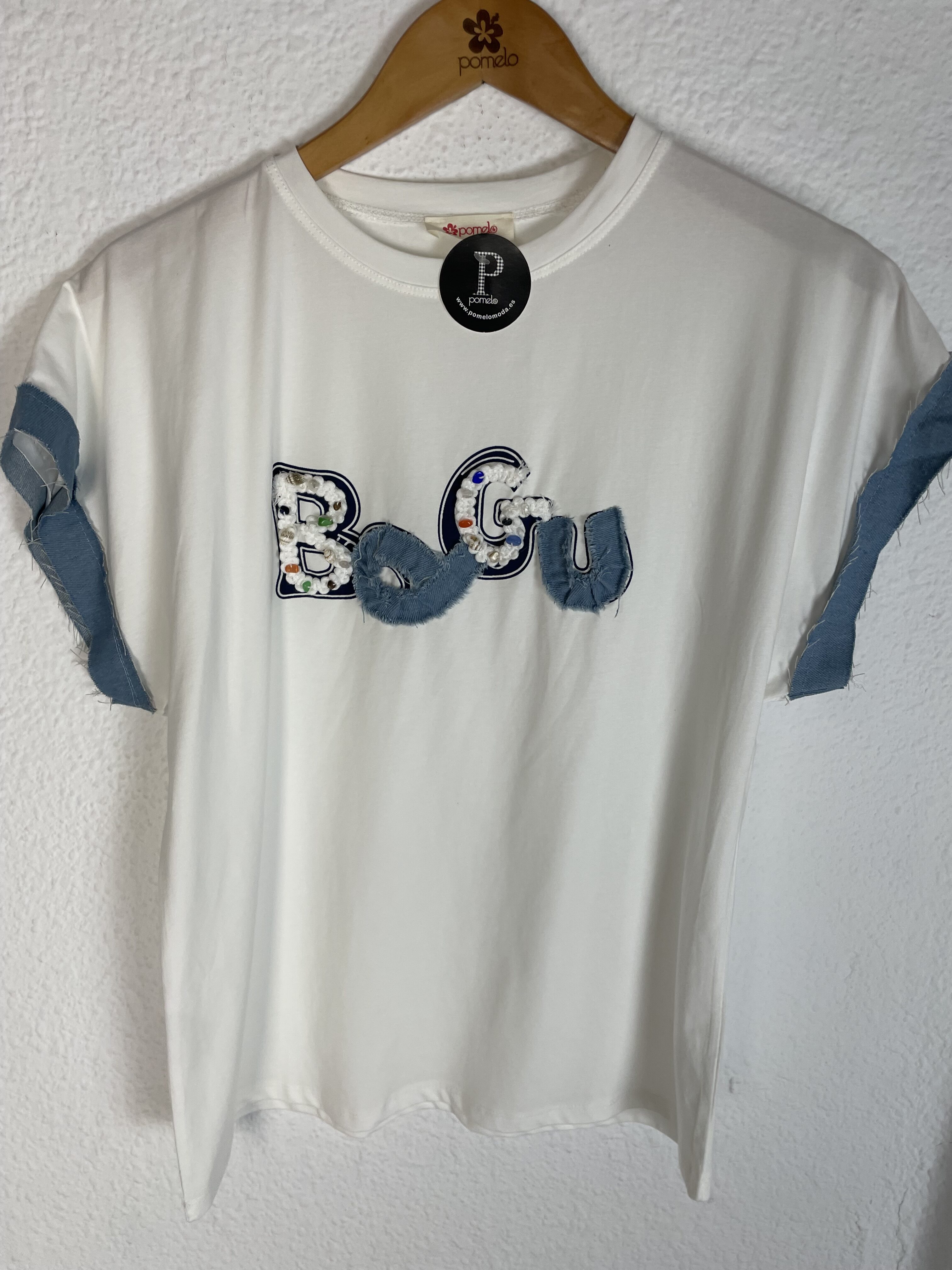 CAMISETA BLANCA DETALLES VAQUEROS