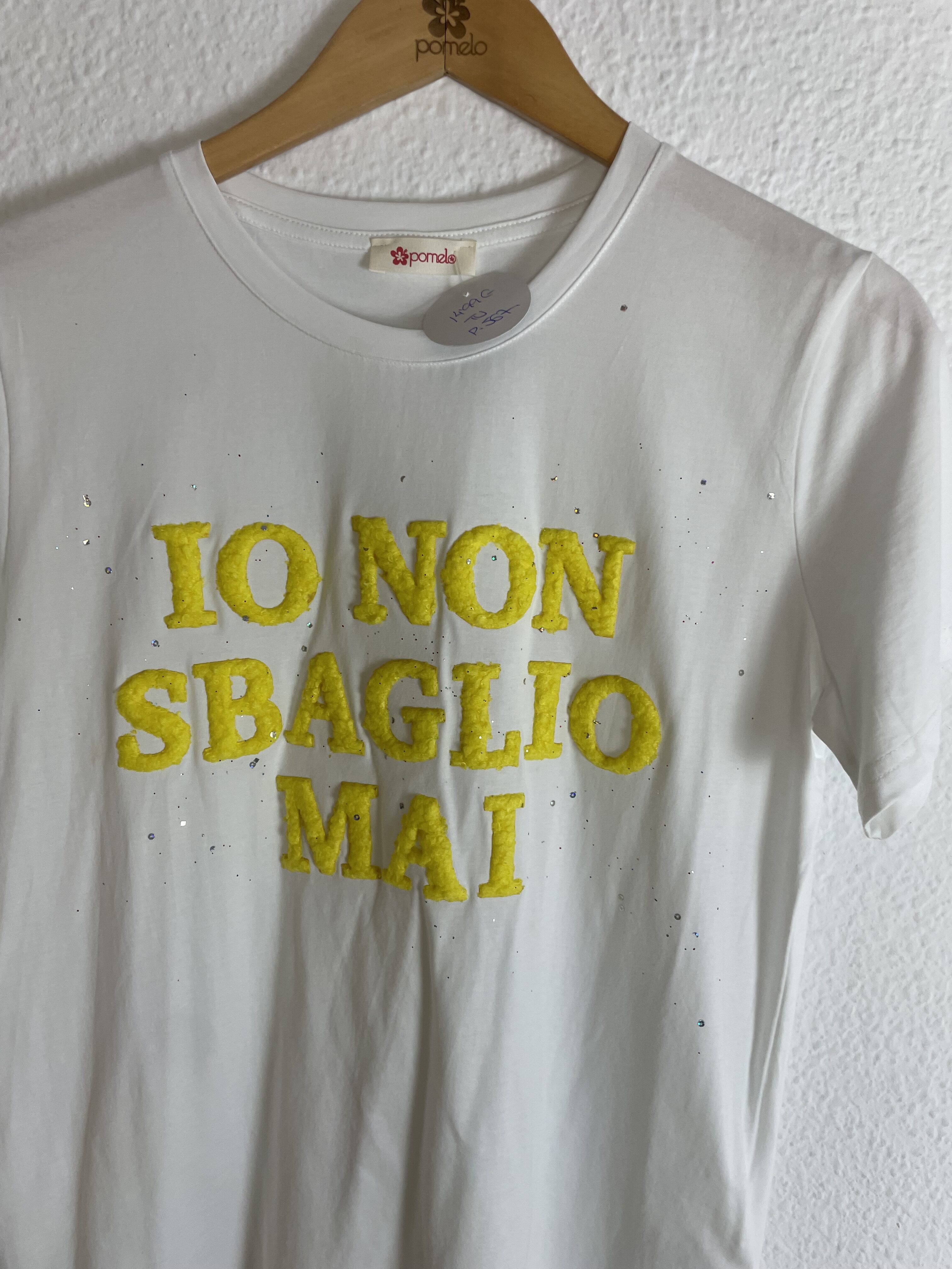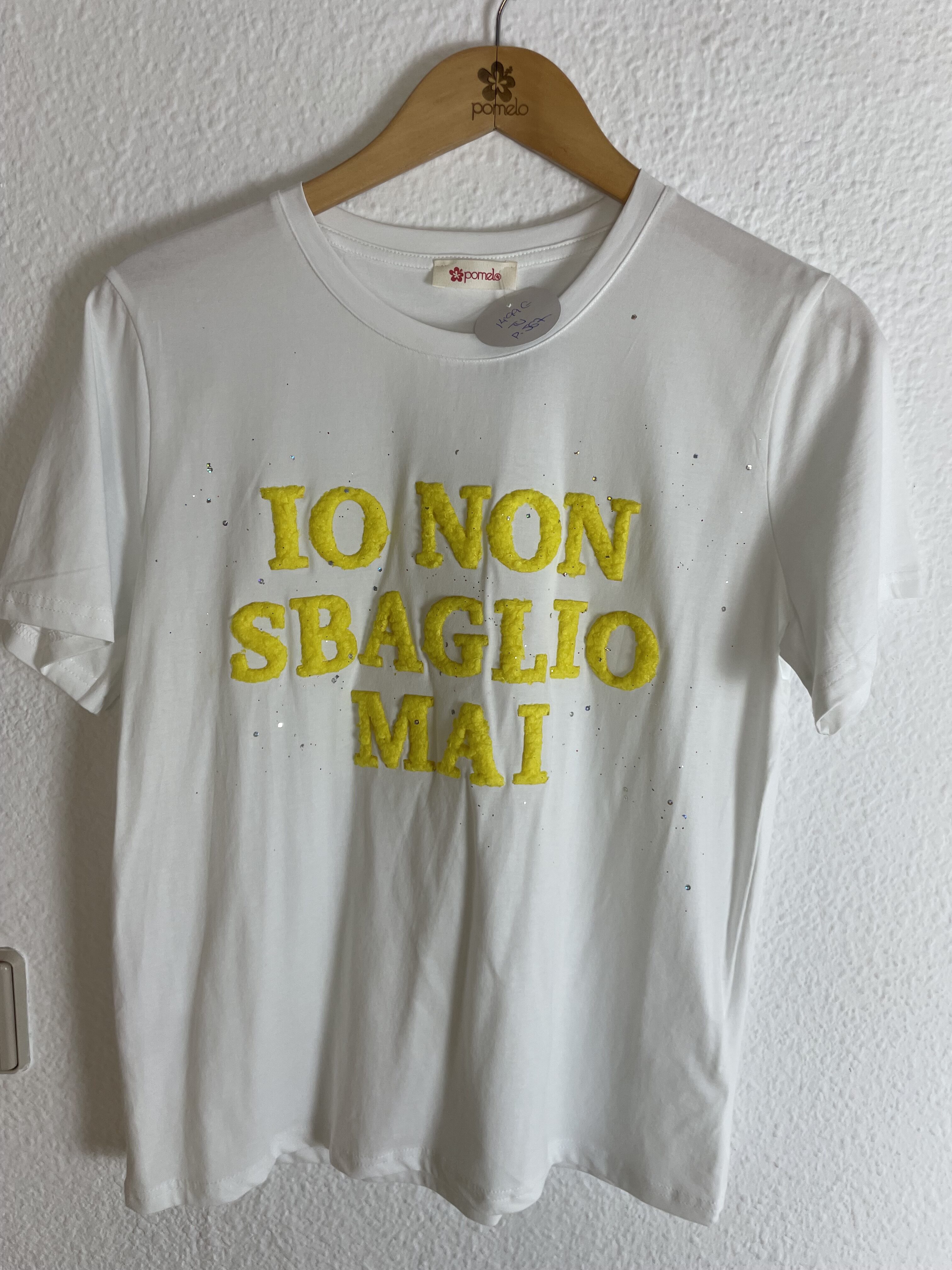 CAMISETA BLANCA LETRAS REALCE AMARILLA
