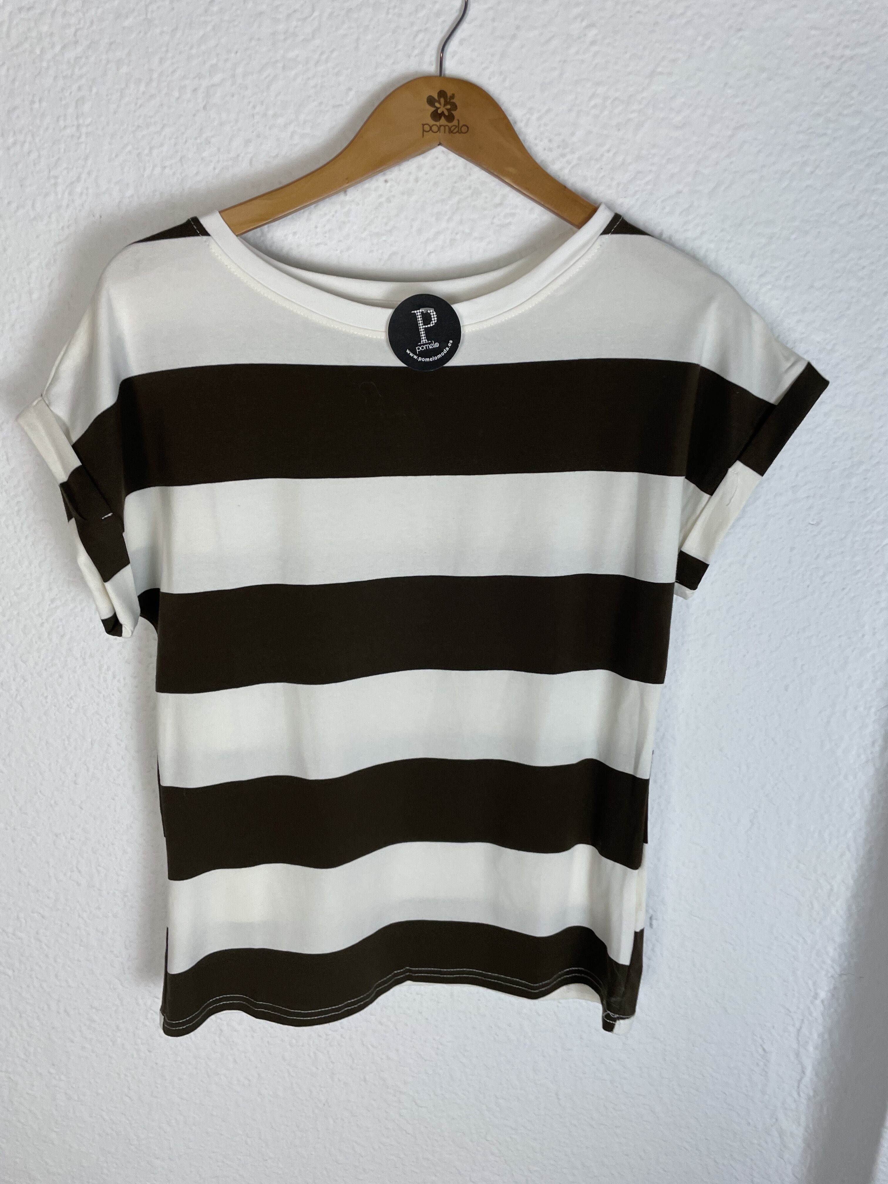 CAMISETA RAYAS MARRON Y BLANCA