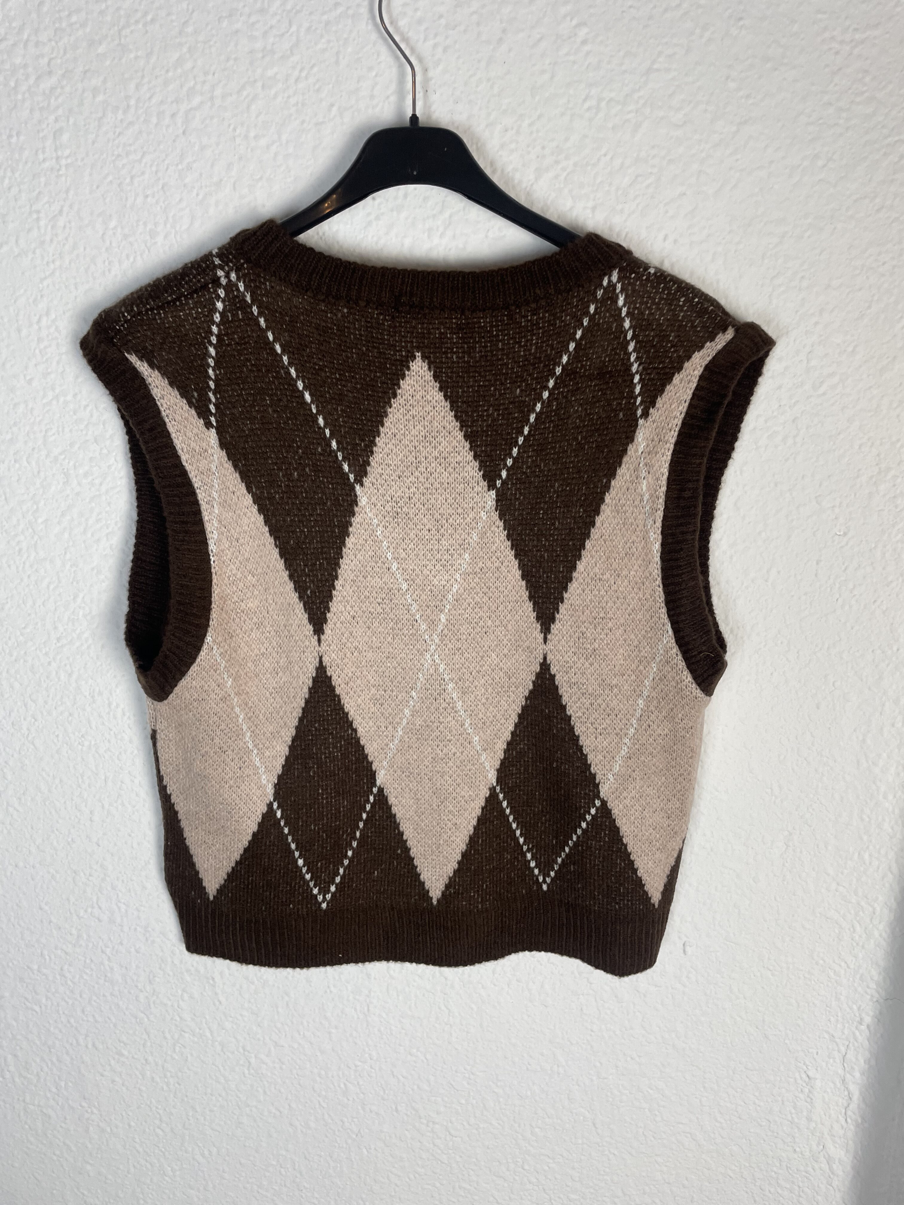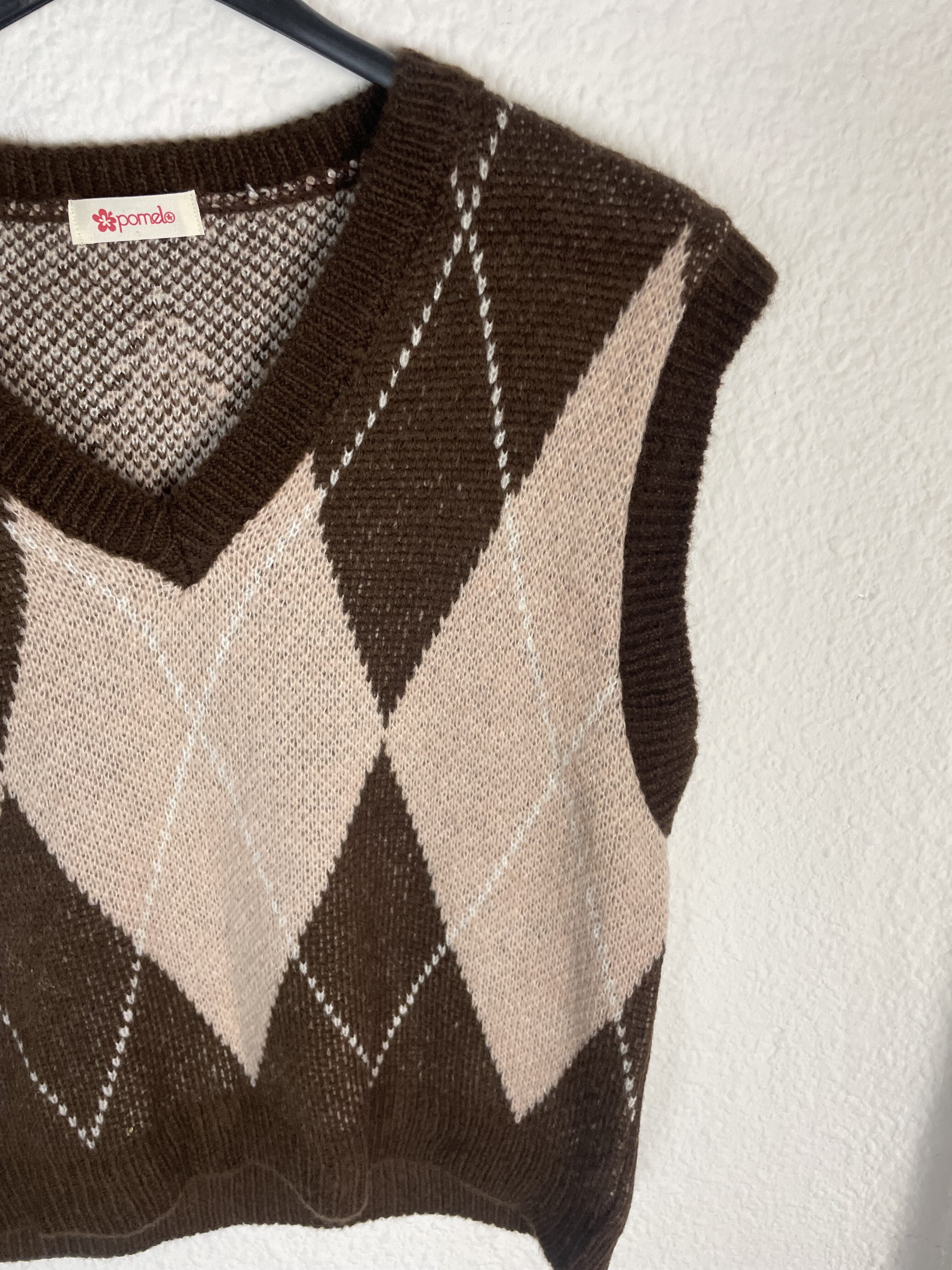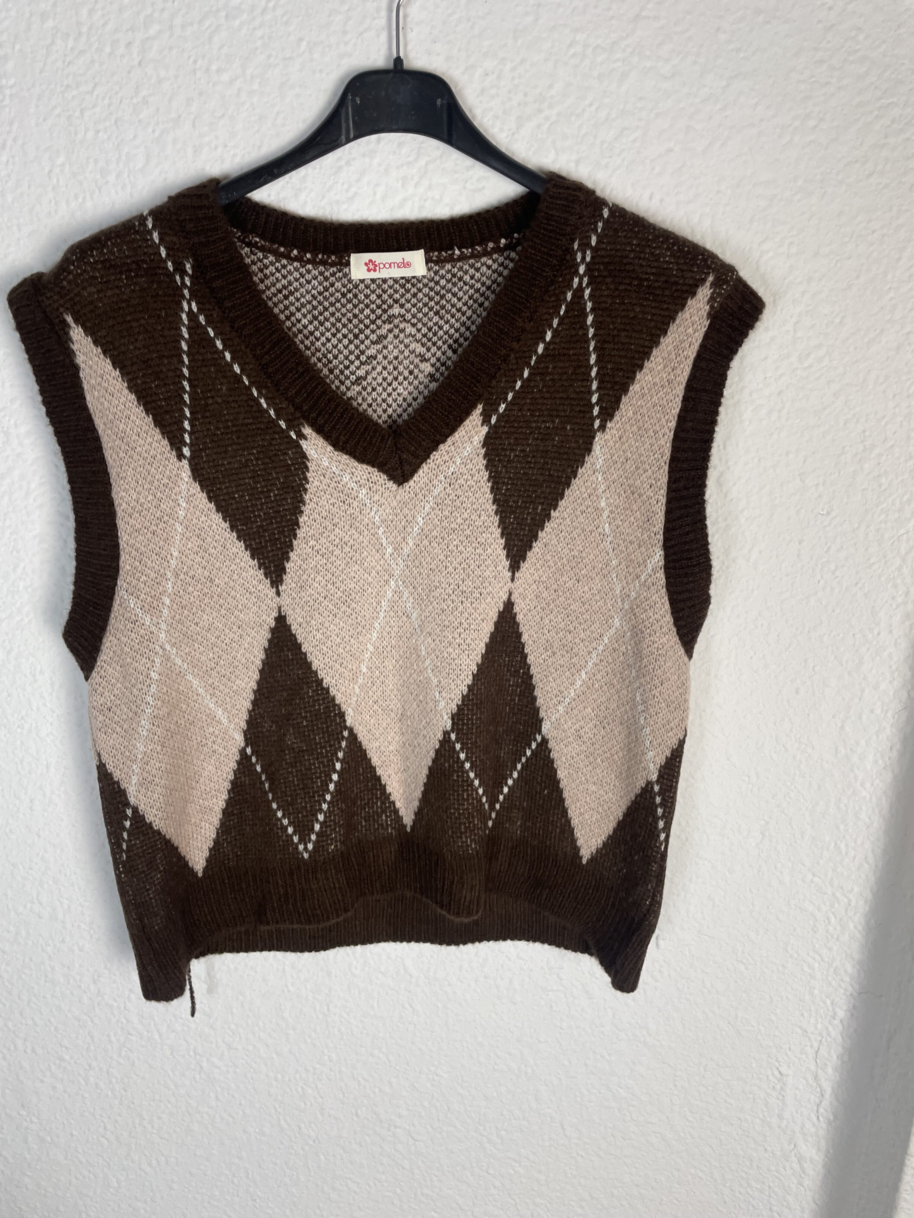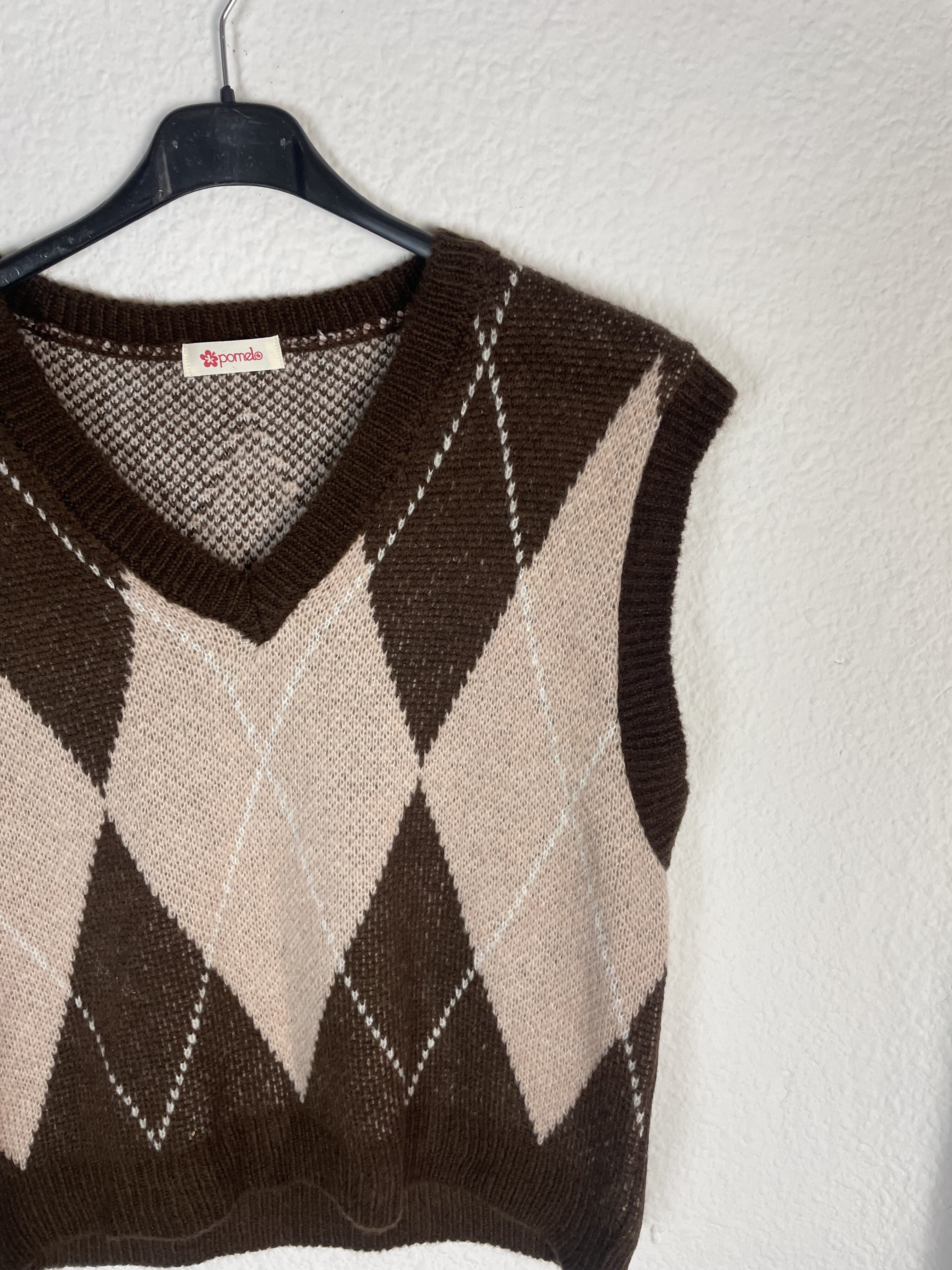 CHALECO ROMBOS ROSA Y MARRON