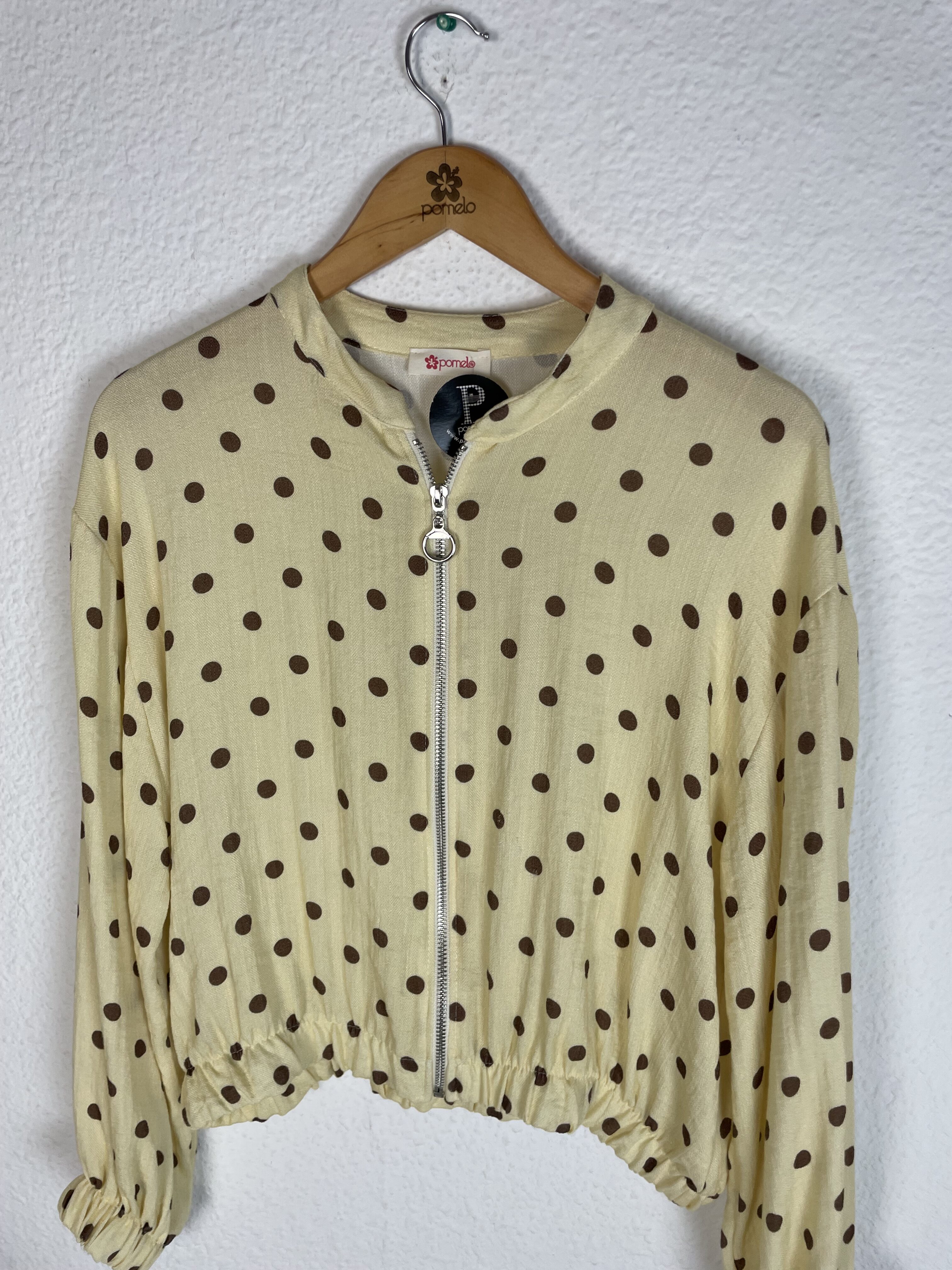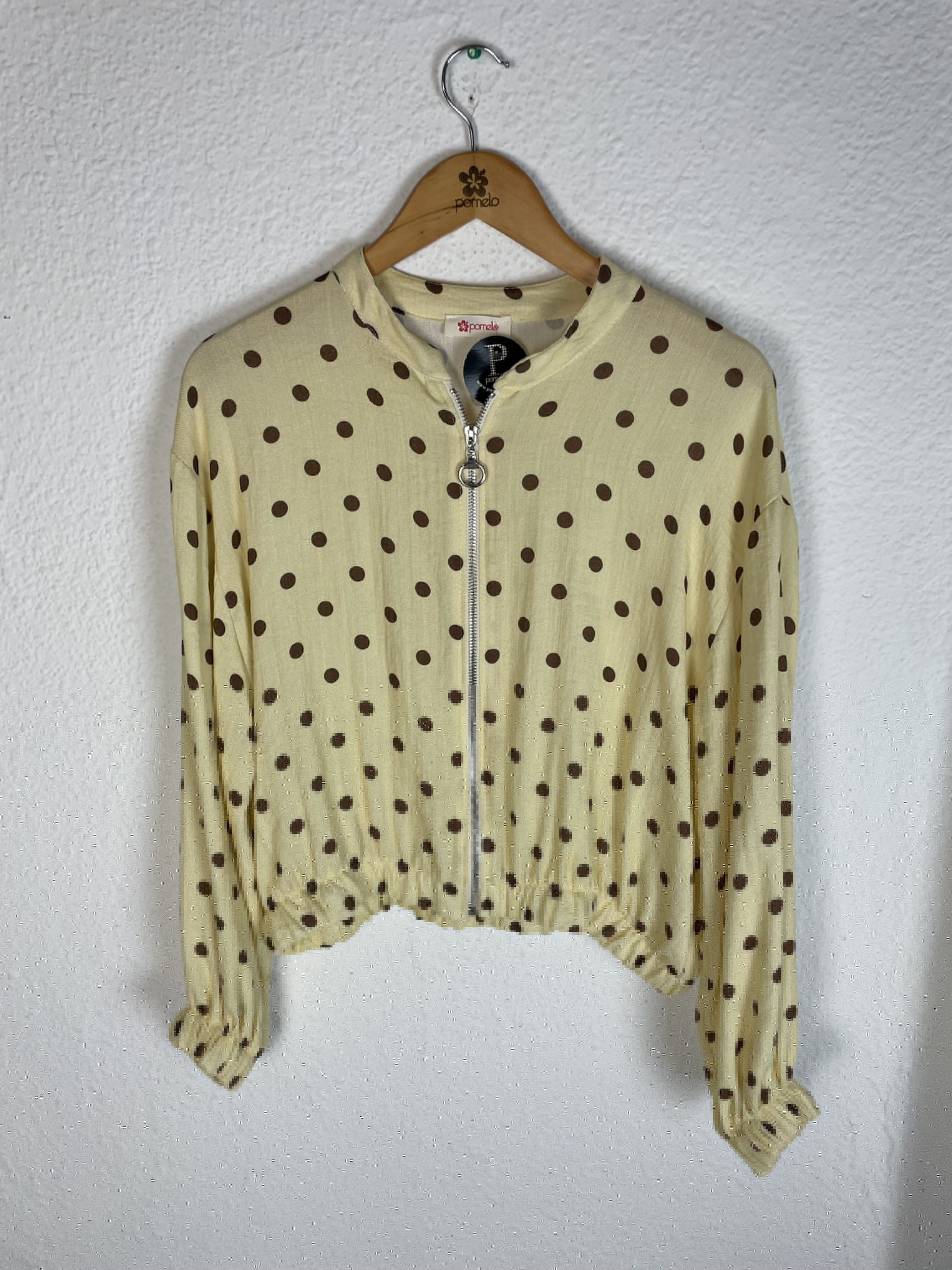 CHAQUETA BOMBER AMARILLA LUNARES MARRON