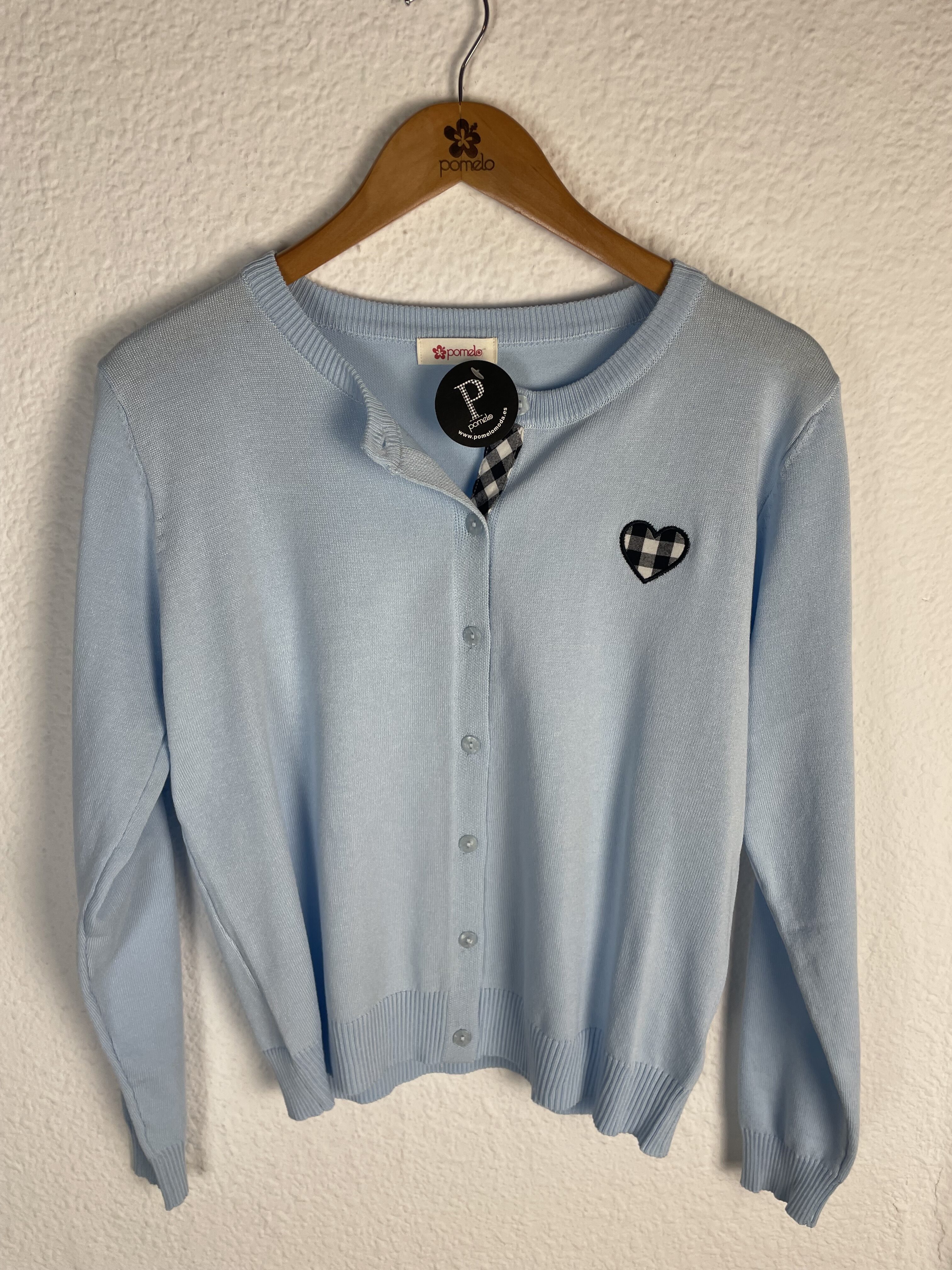 CHAQUETA CELESTE DETALLE VICHY MARINO