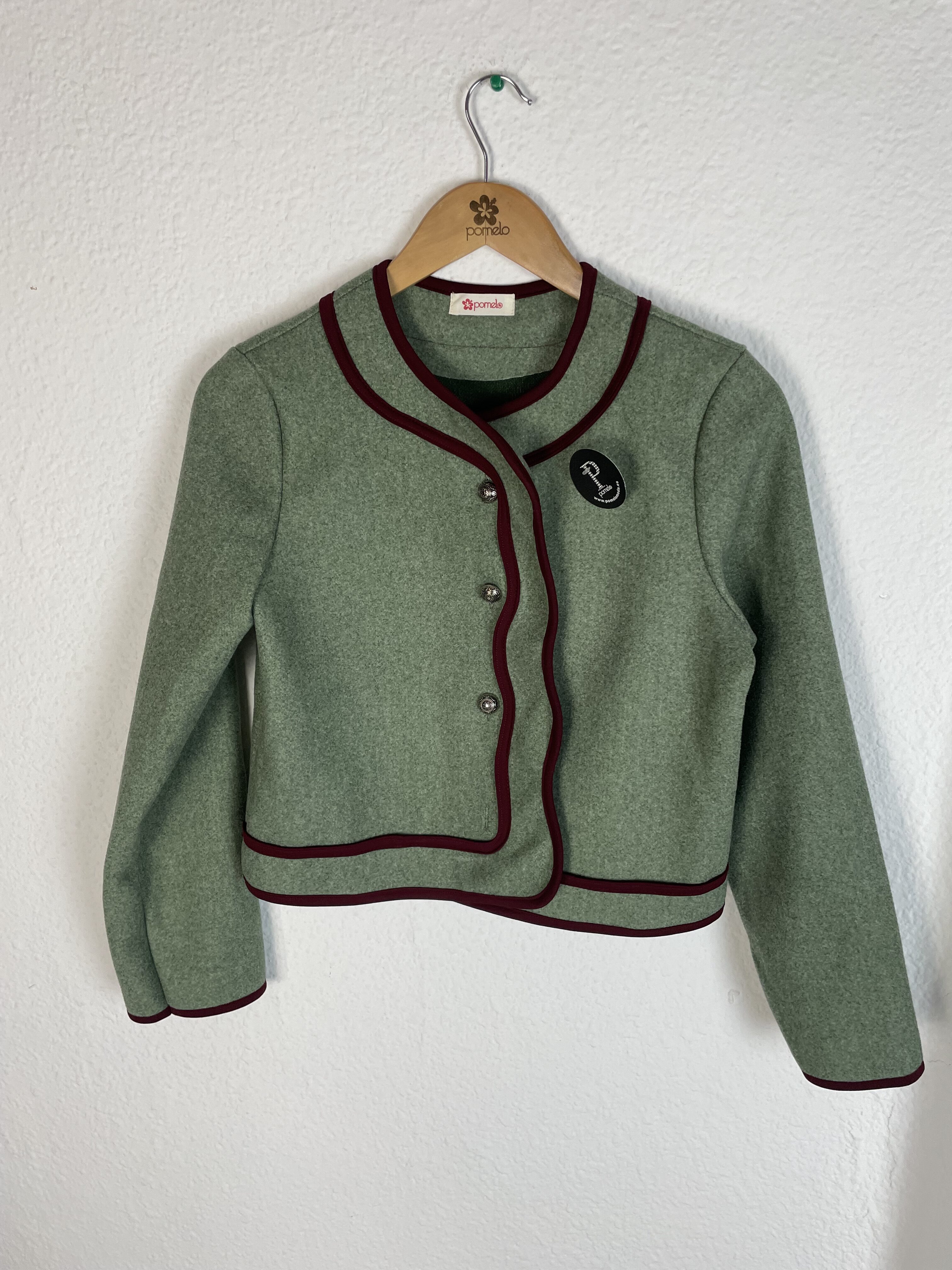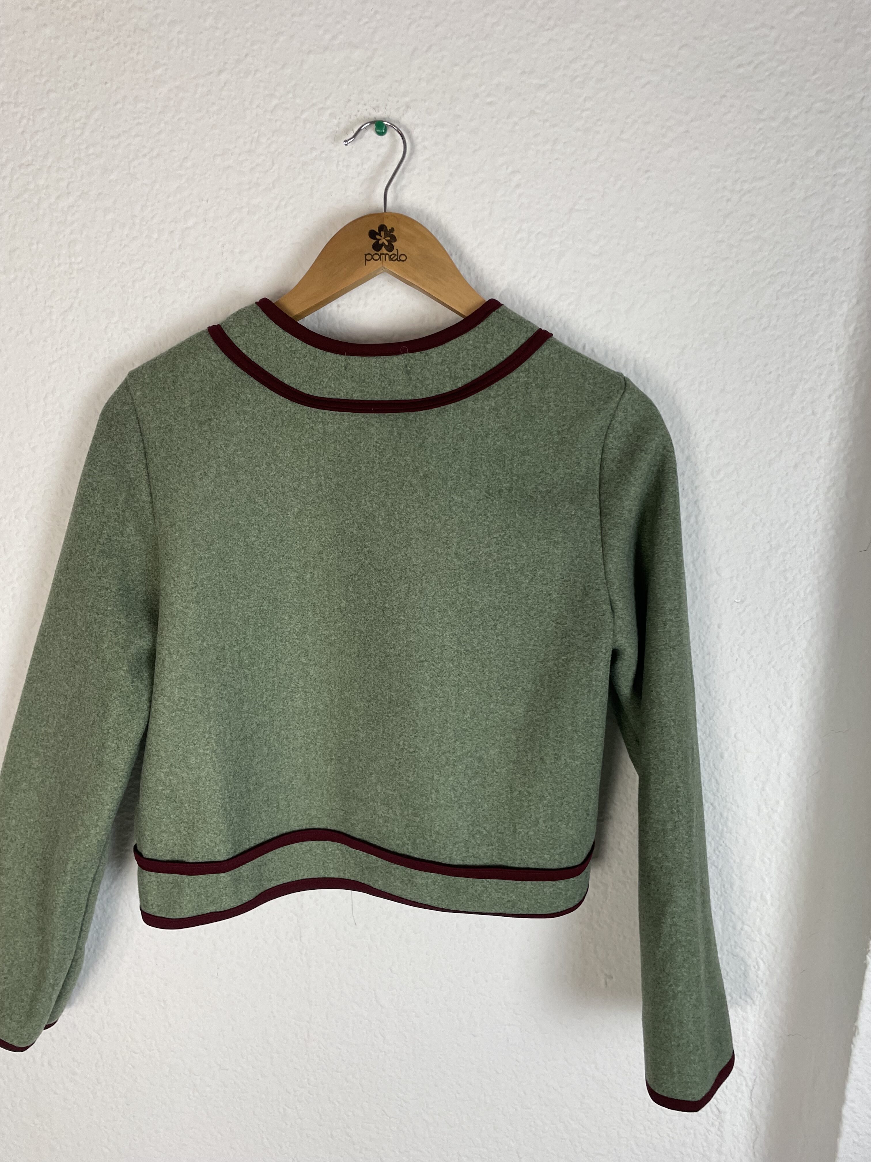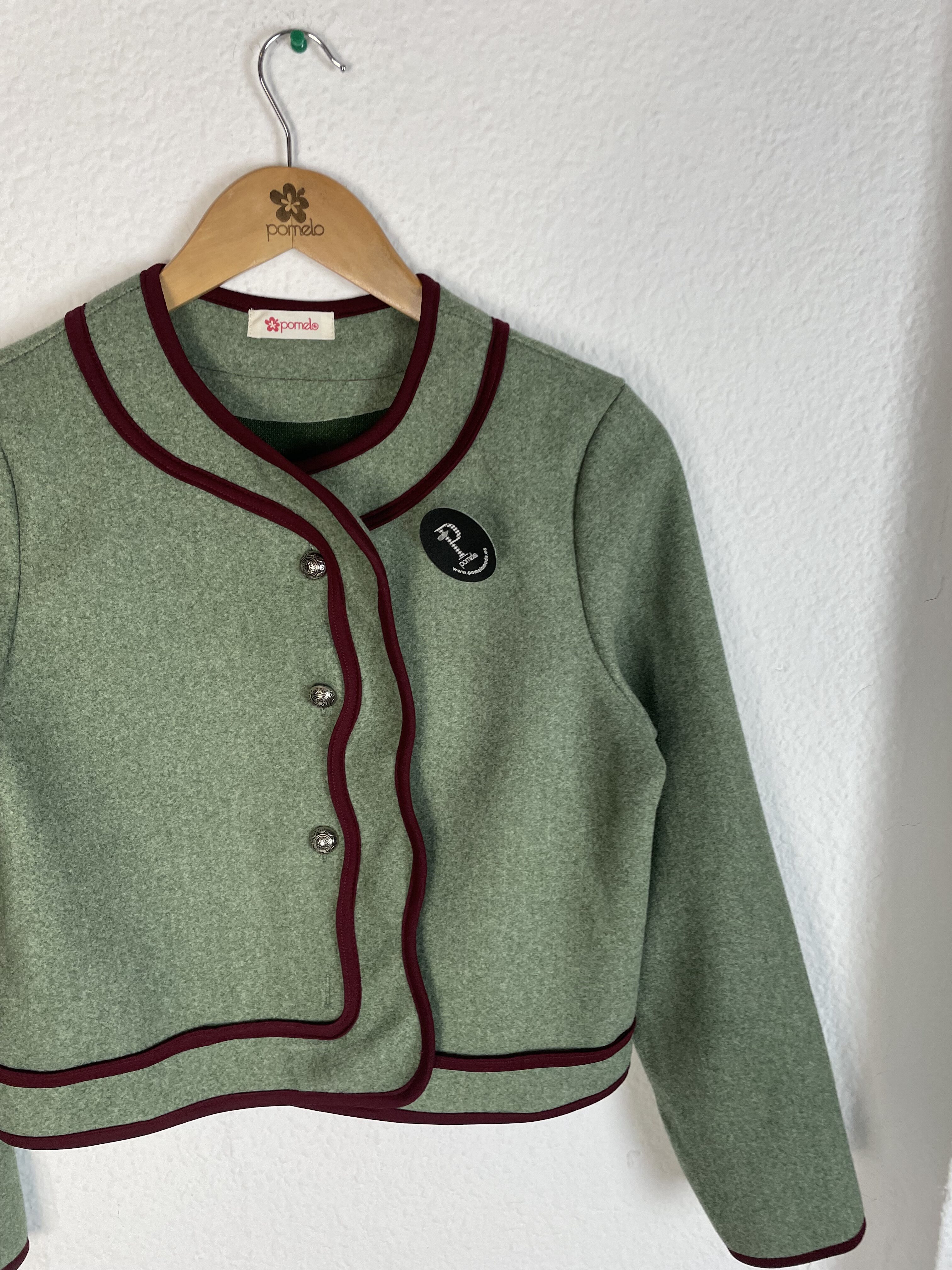 CHAQUETA PAÑO VERDE DETALLE EN BURDEOS