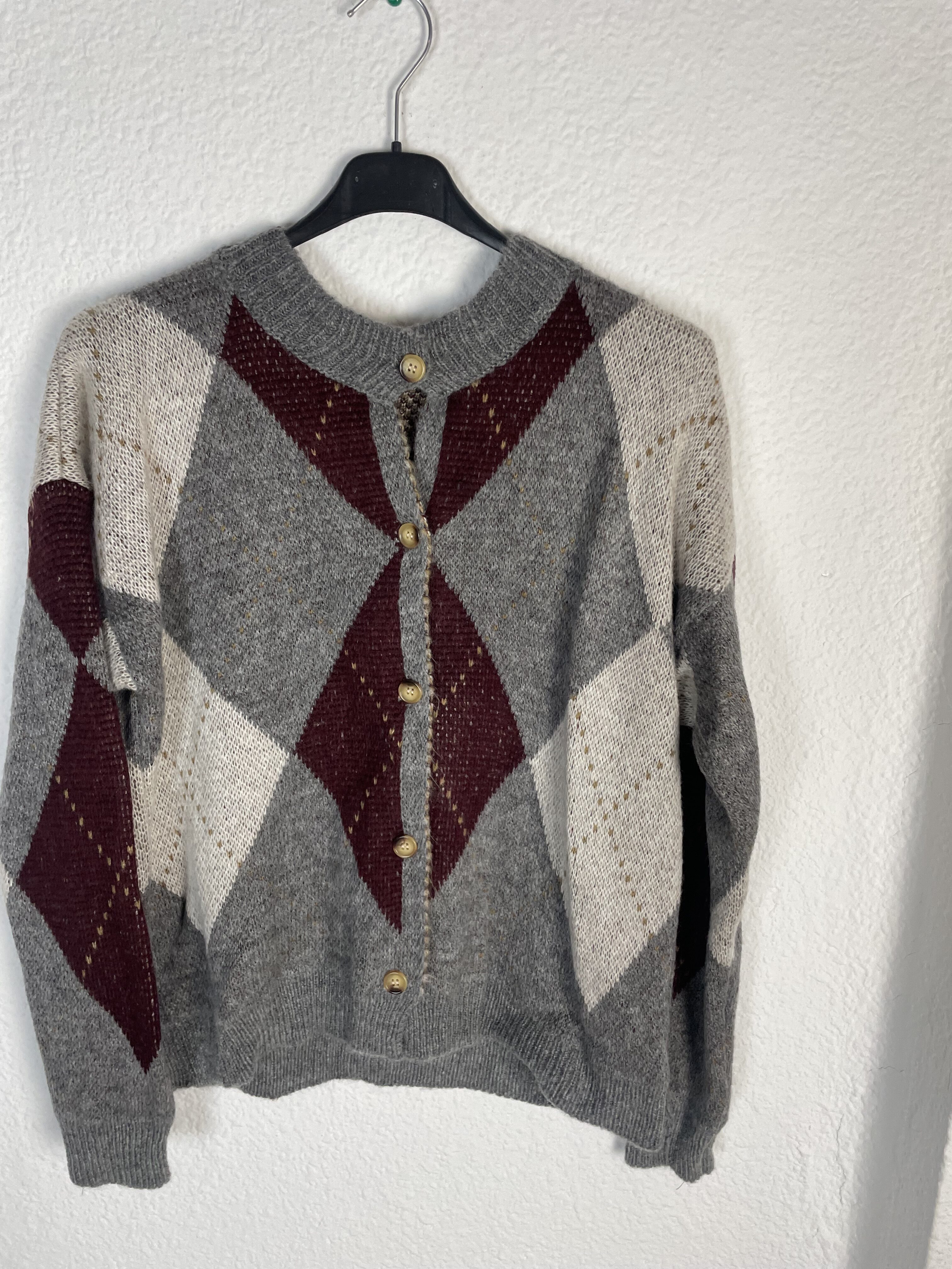 CHAQUETA ROMBOS GRIS Y MARRON