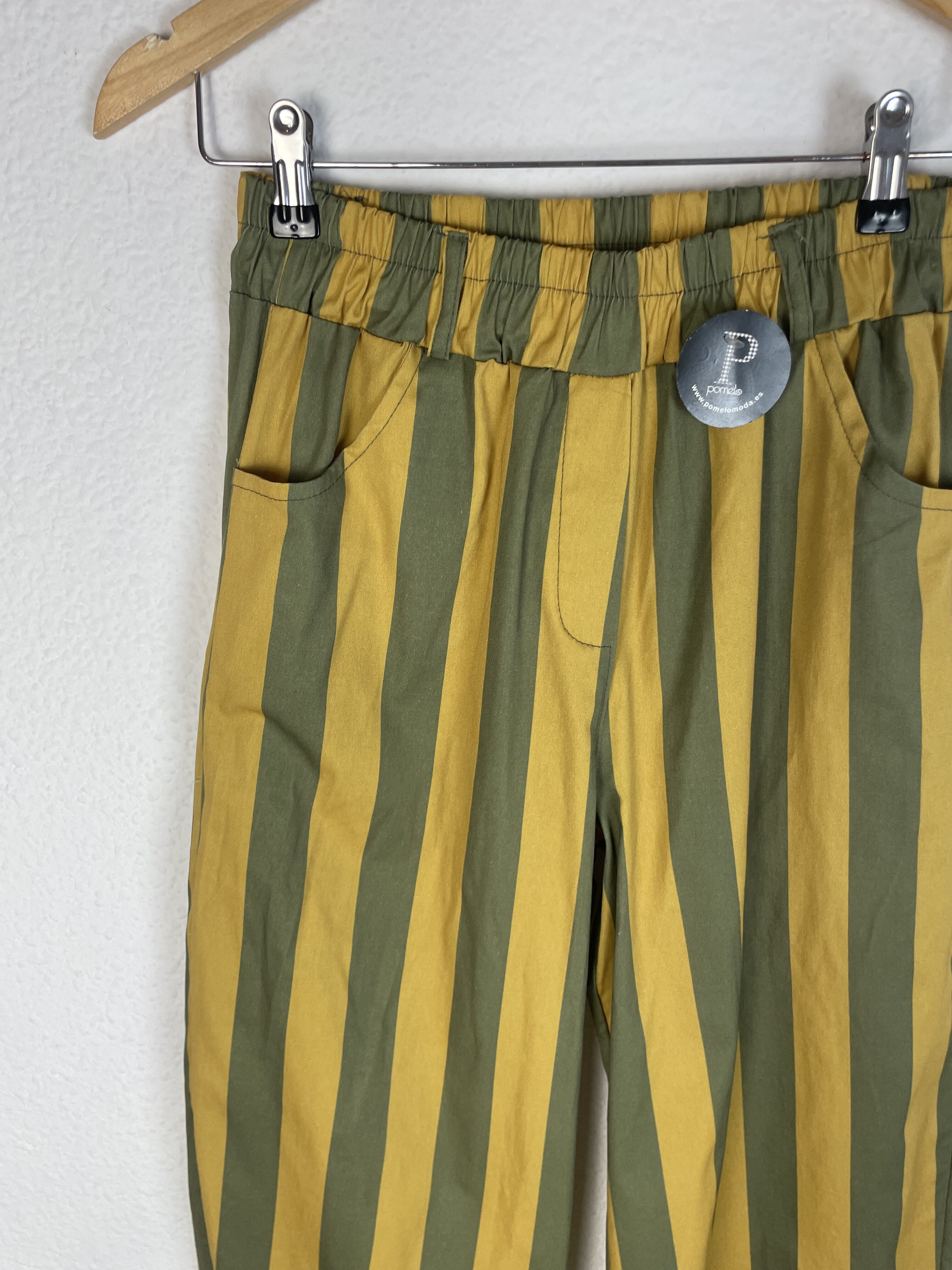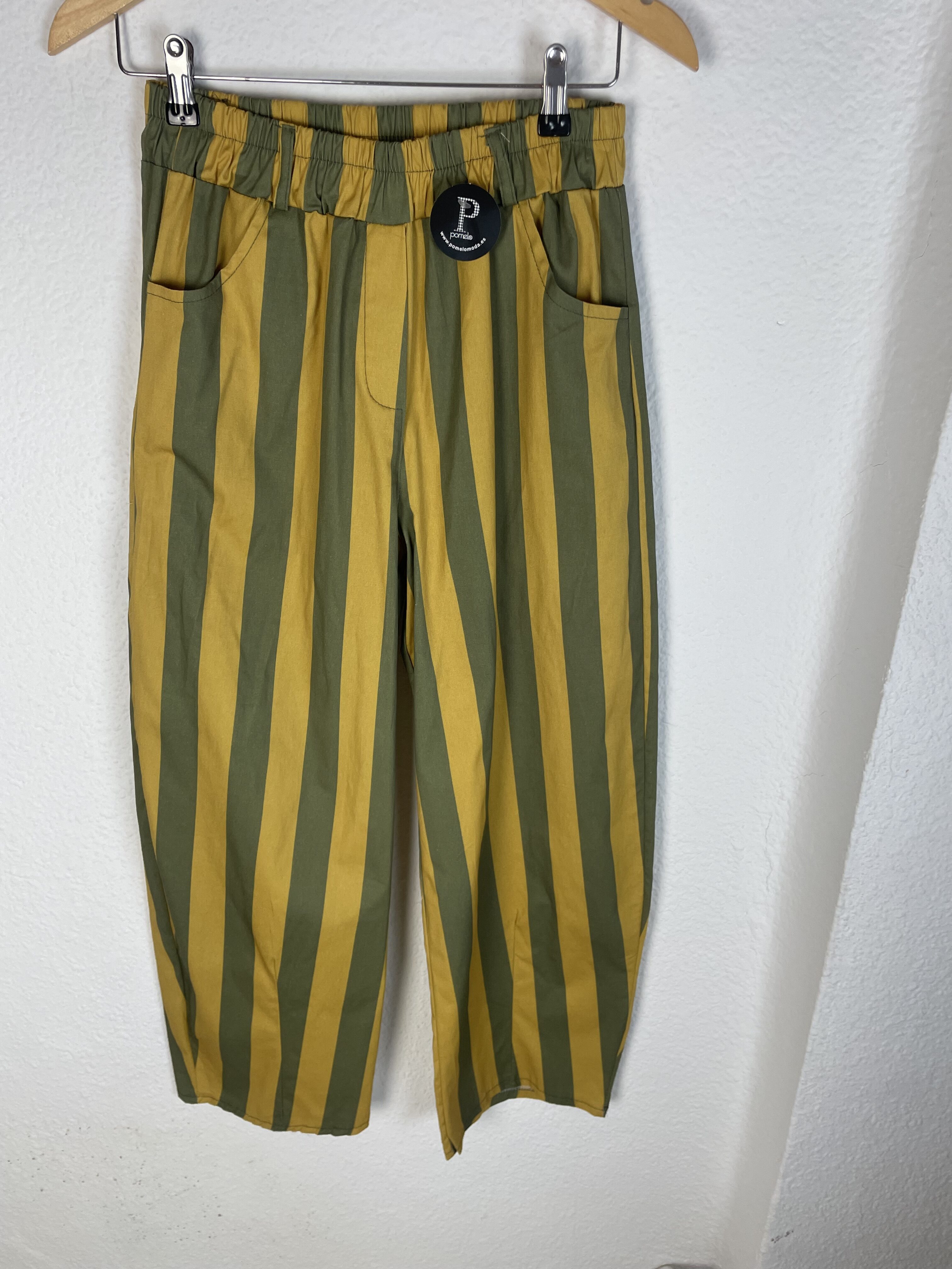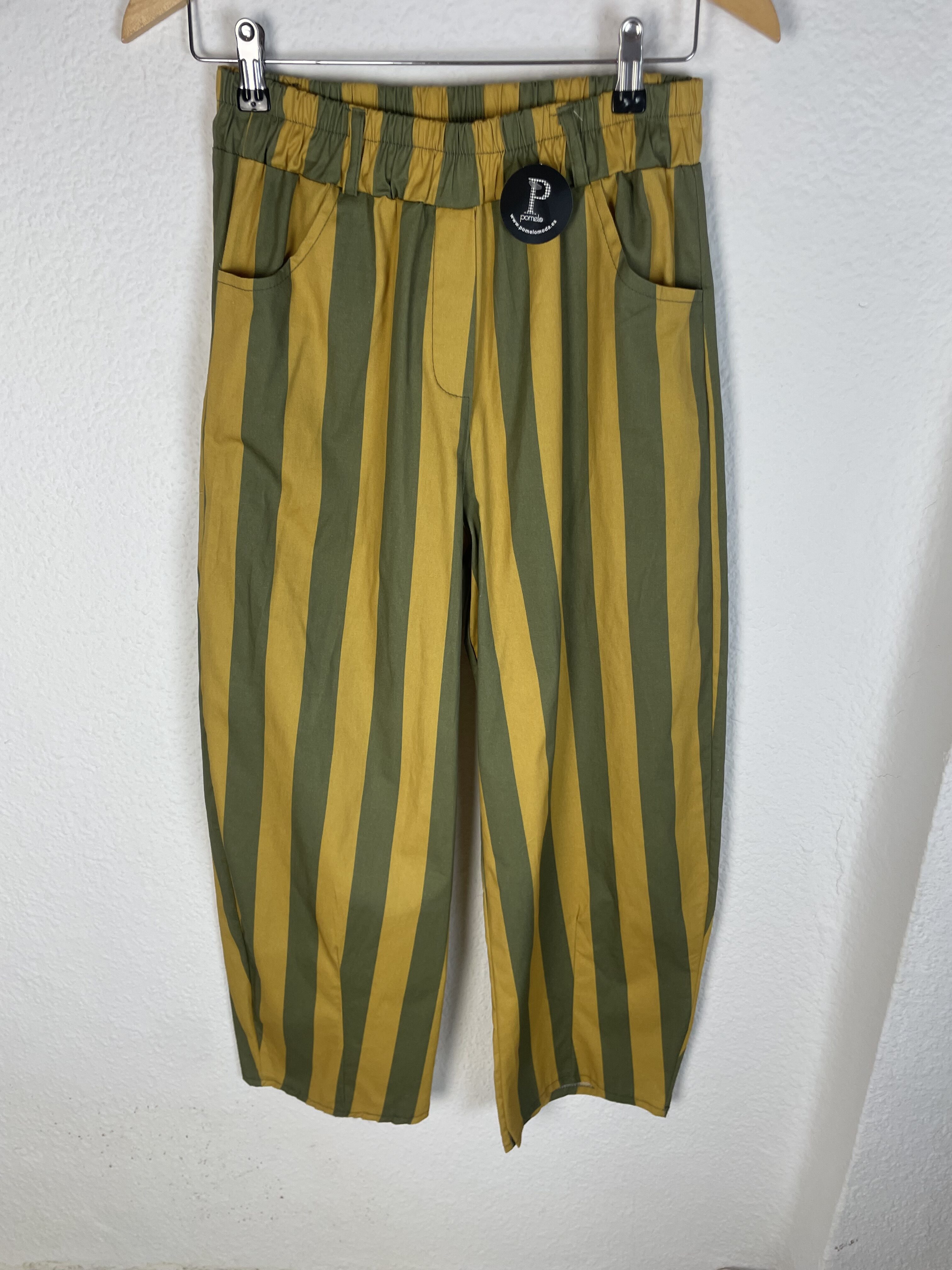 PANTALON GLOBO RAYAS AMARILLO Y VERDE