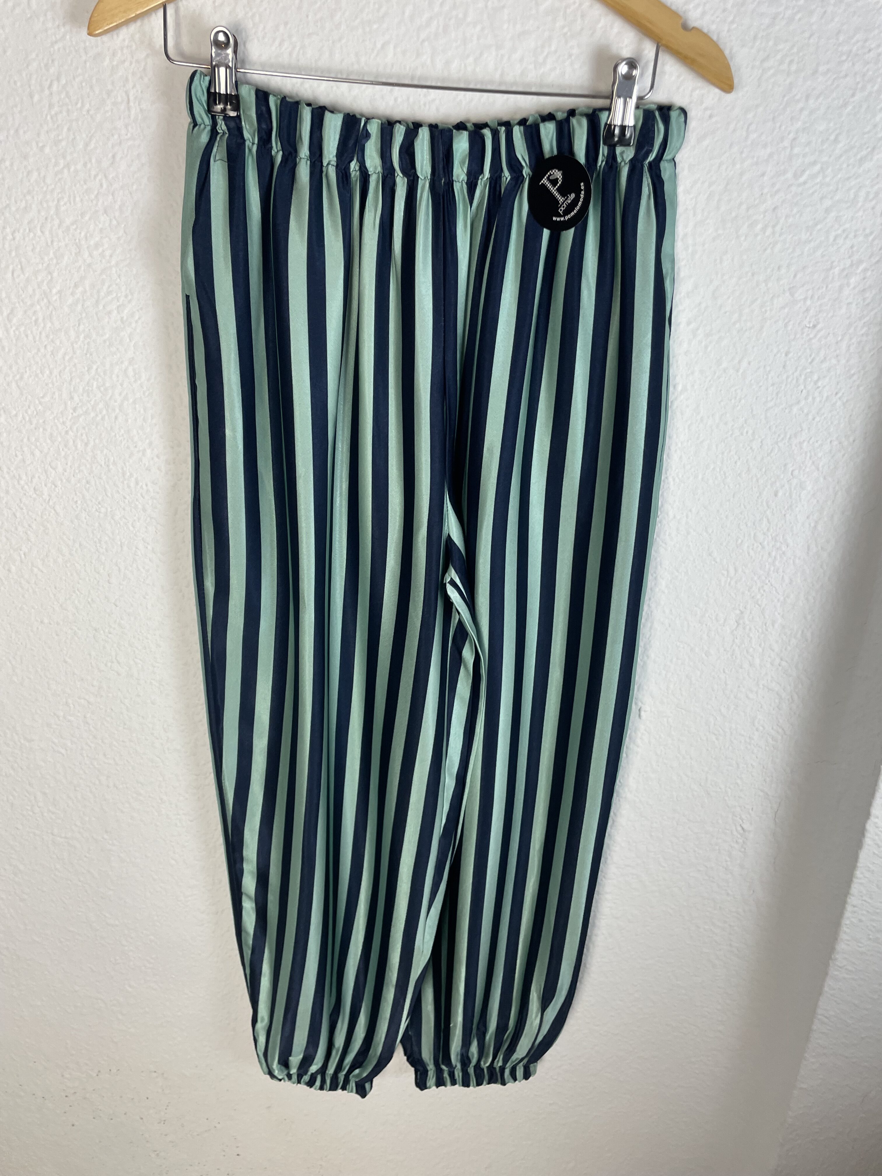 PANTALÓN RAYAS SATINADO TURQUESA Y MARINO