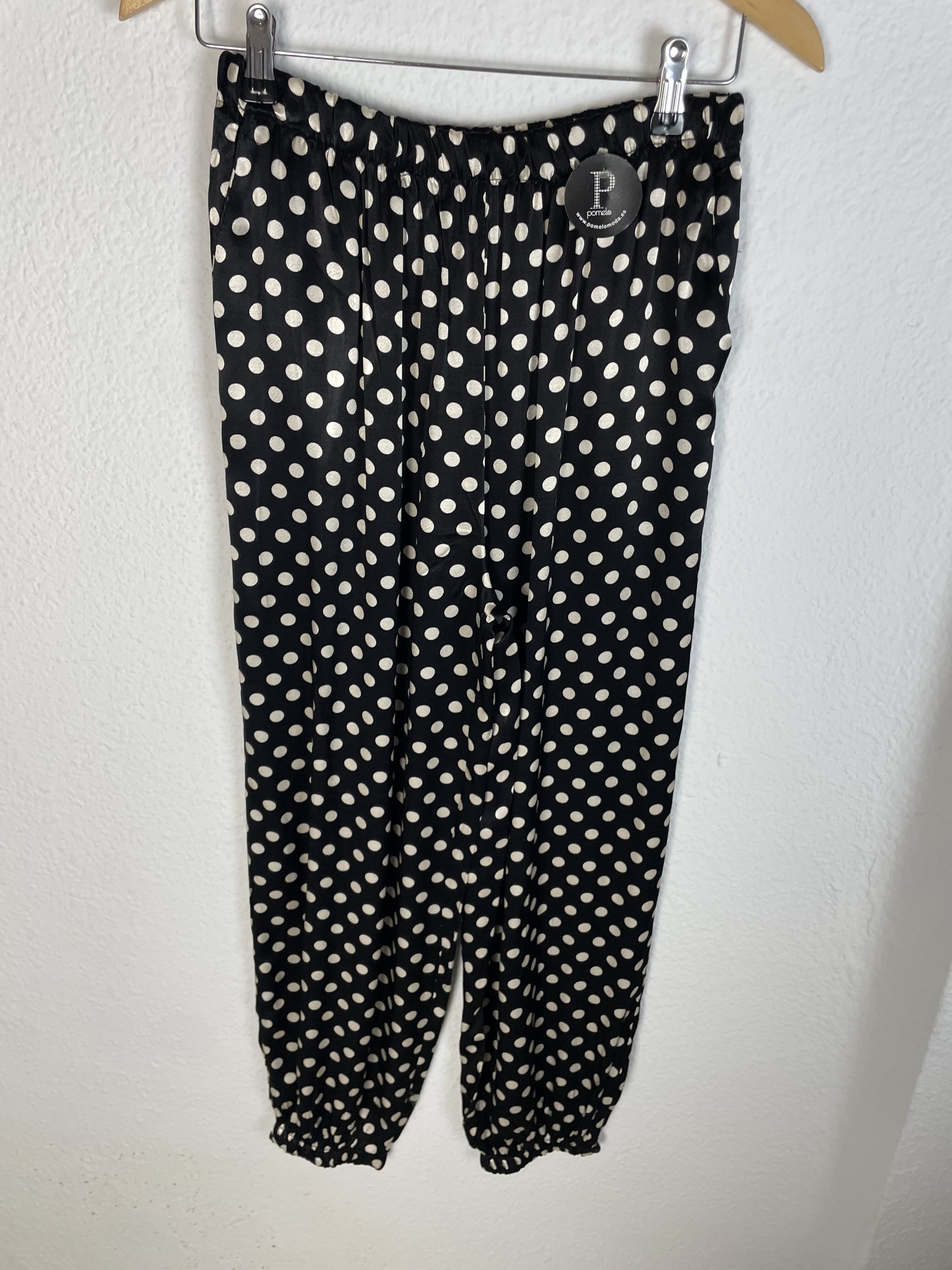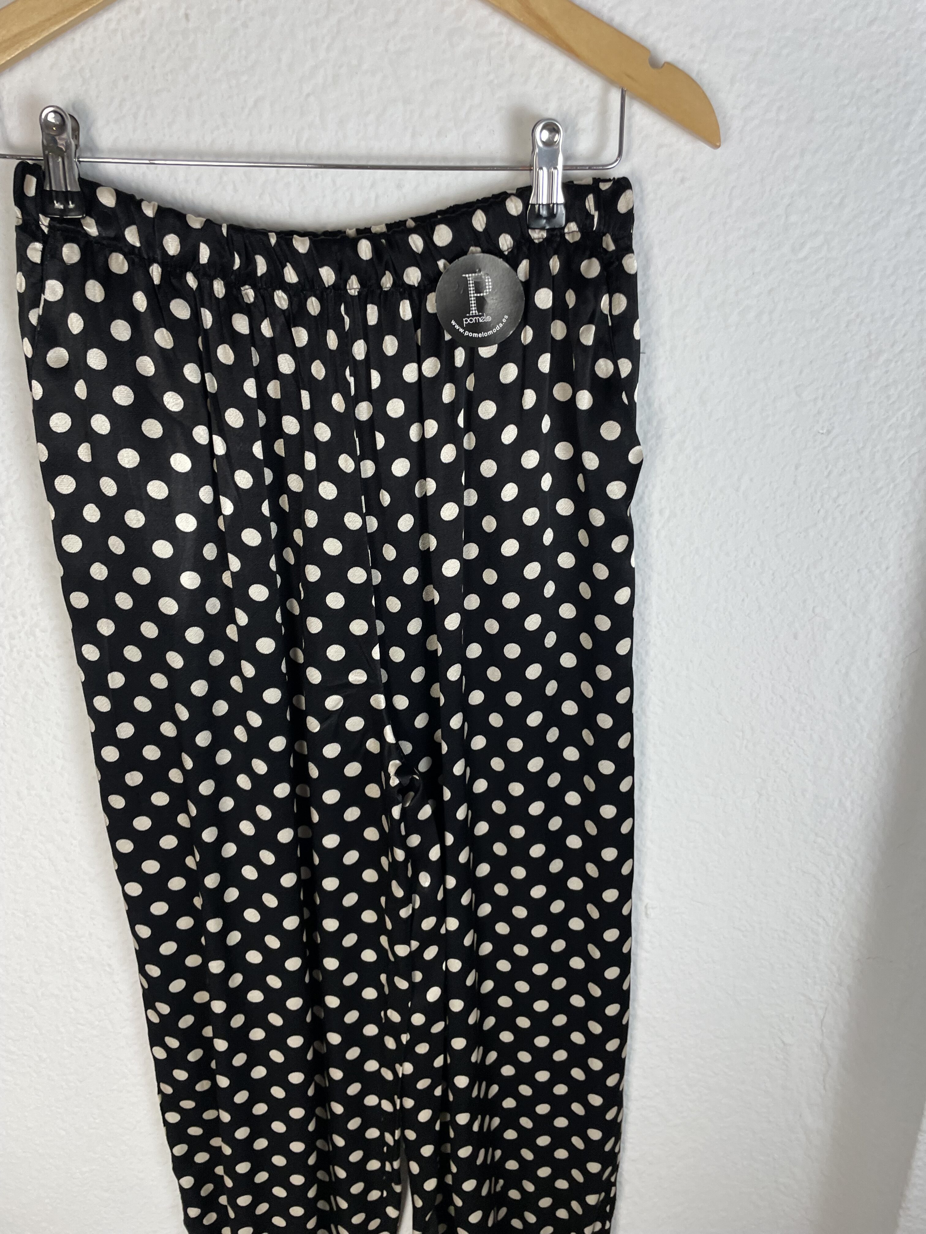 PANTALÓN SATINADO RECOGIDO LUNARES
