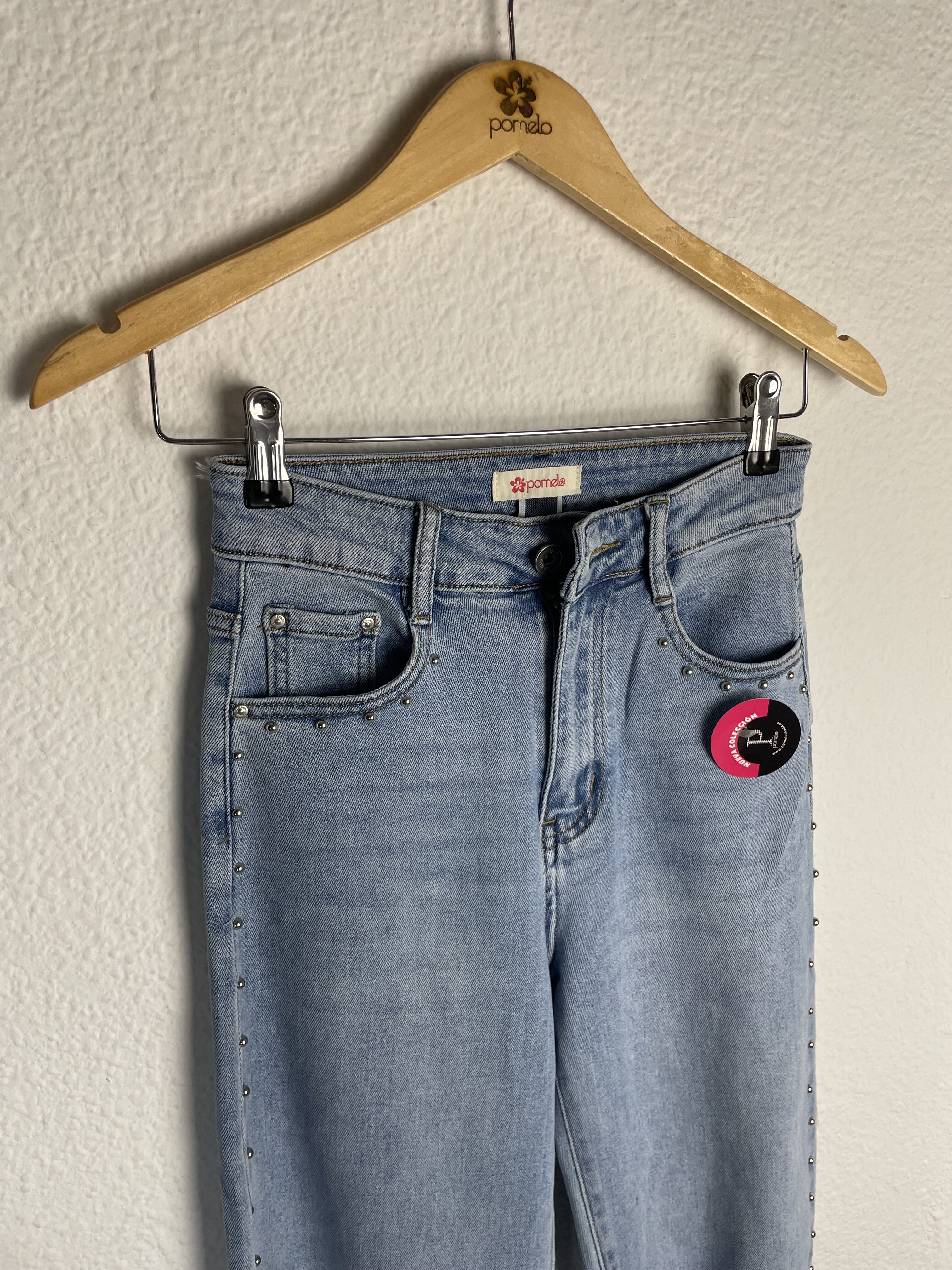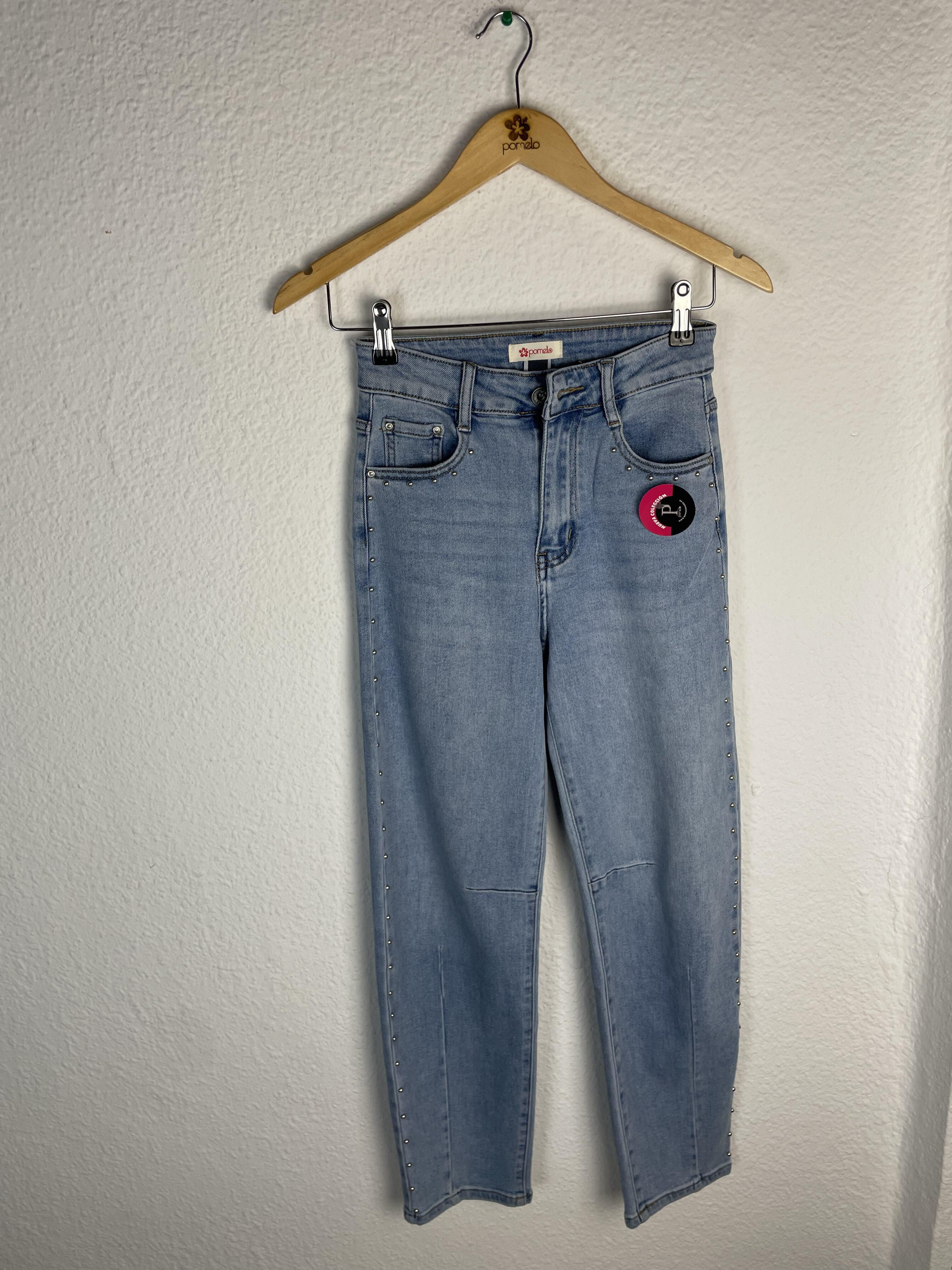 PANTALÓN VAQUERO TACHUELAS FORMA GLOBO