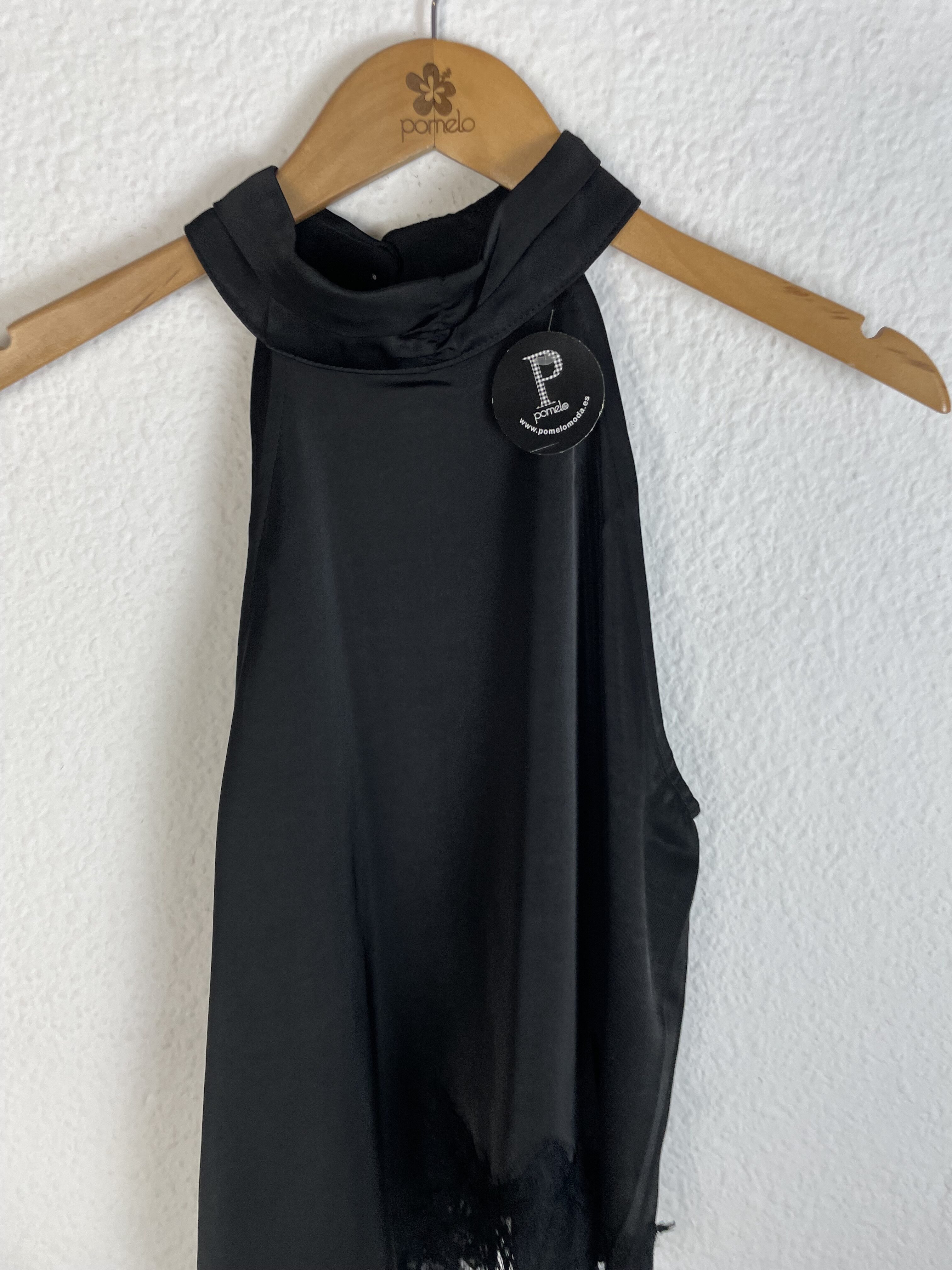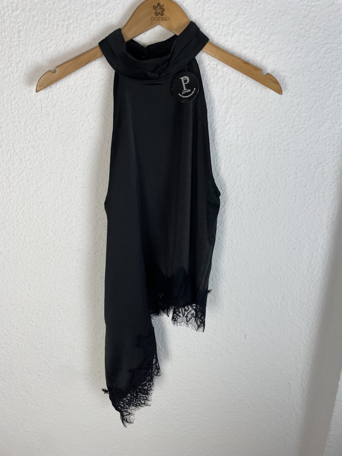 TOP SATINADO NEGRO ASIMÉTRICO BLONDA