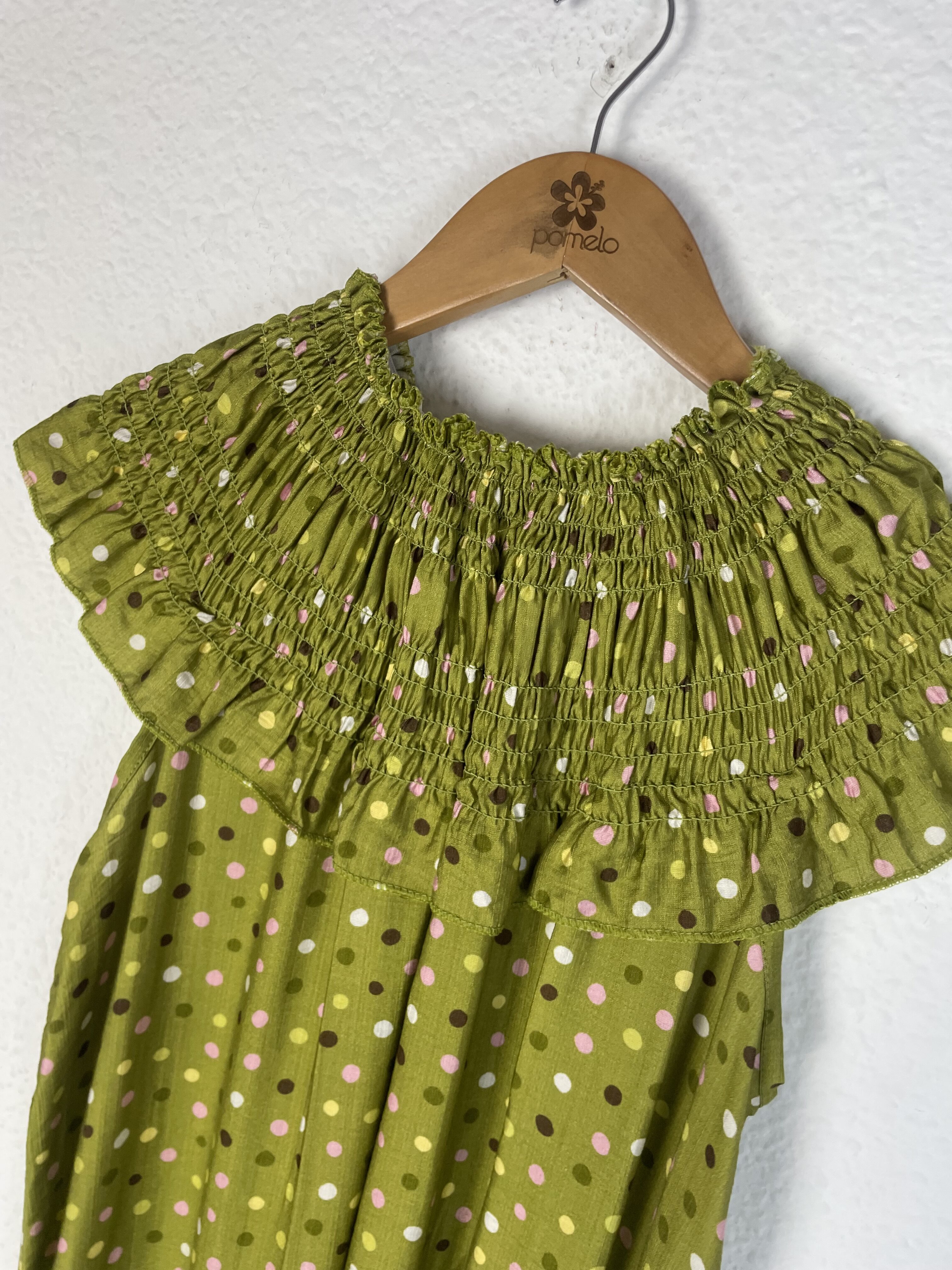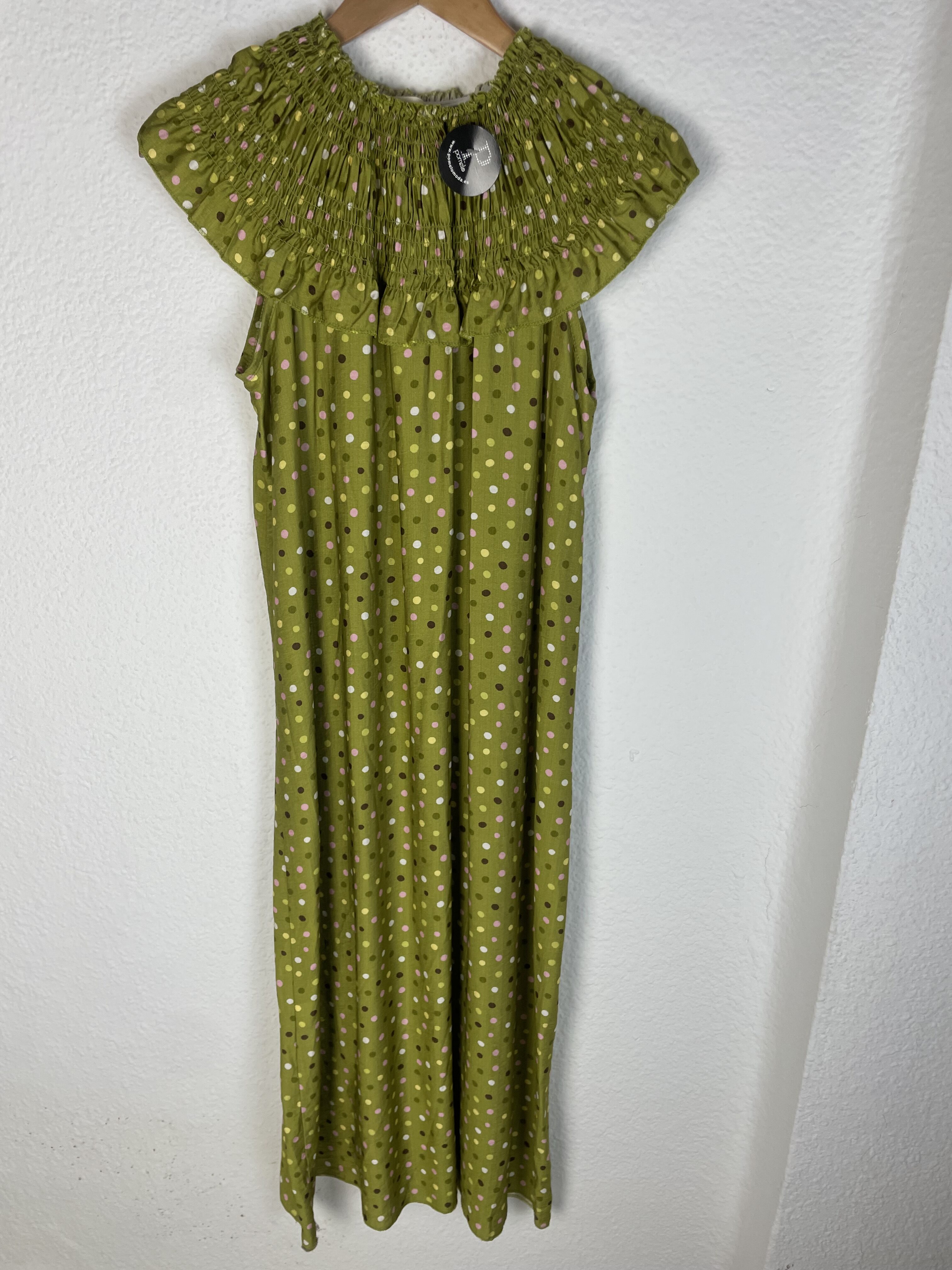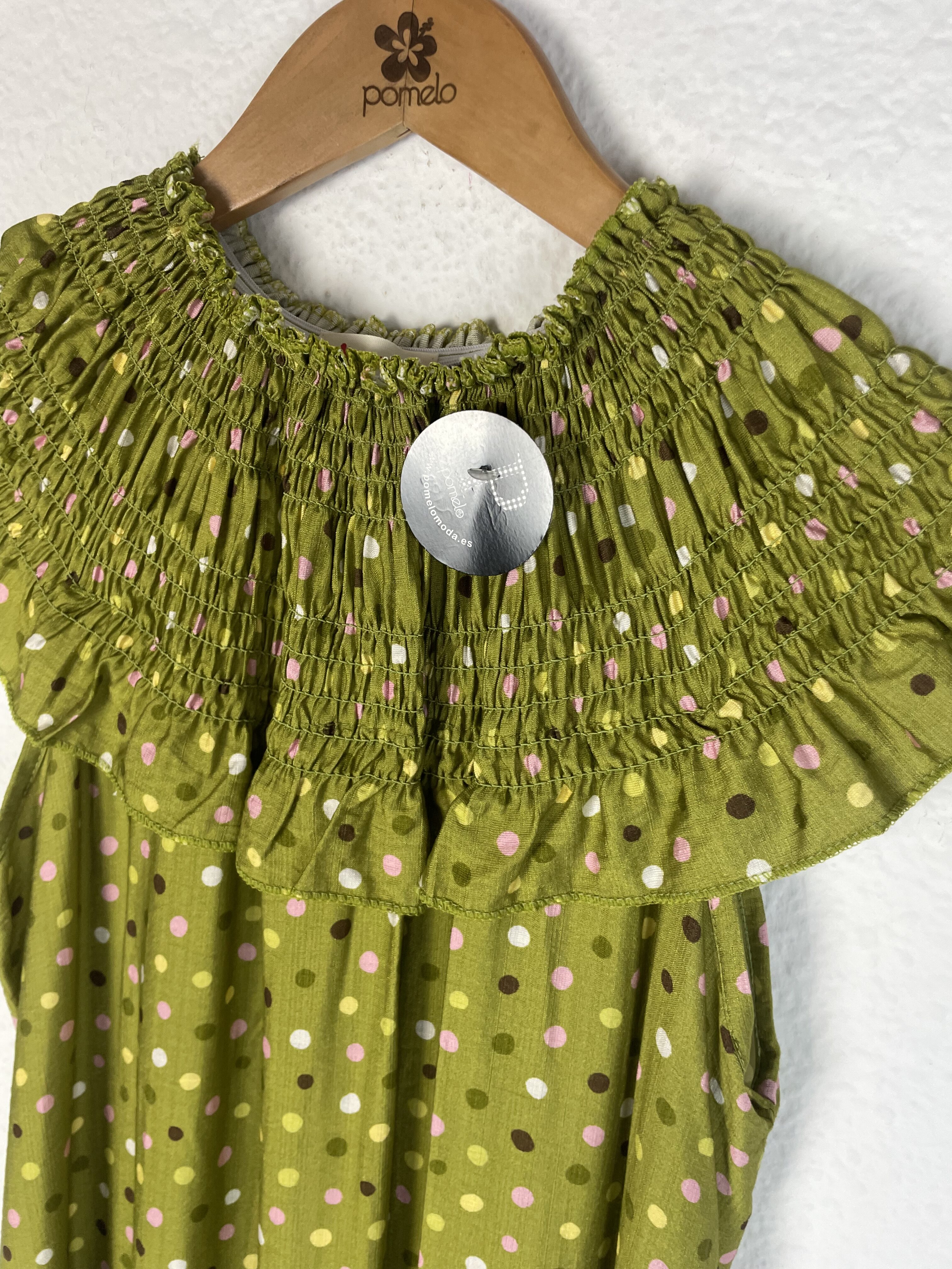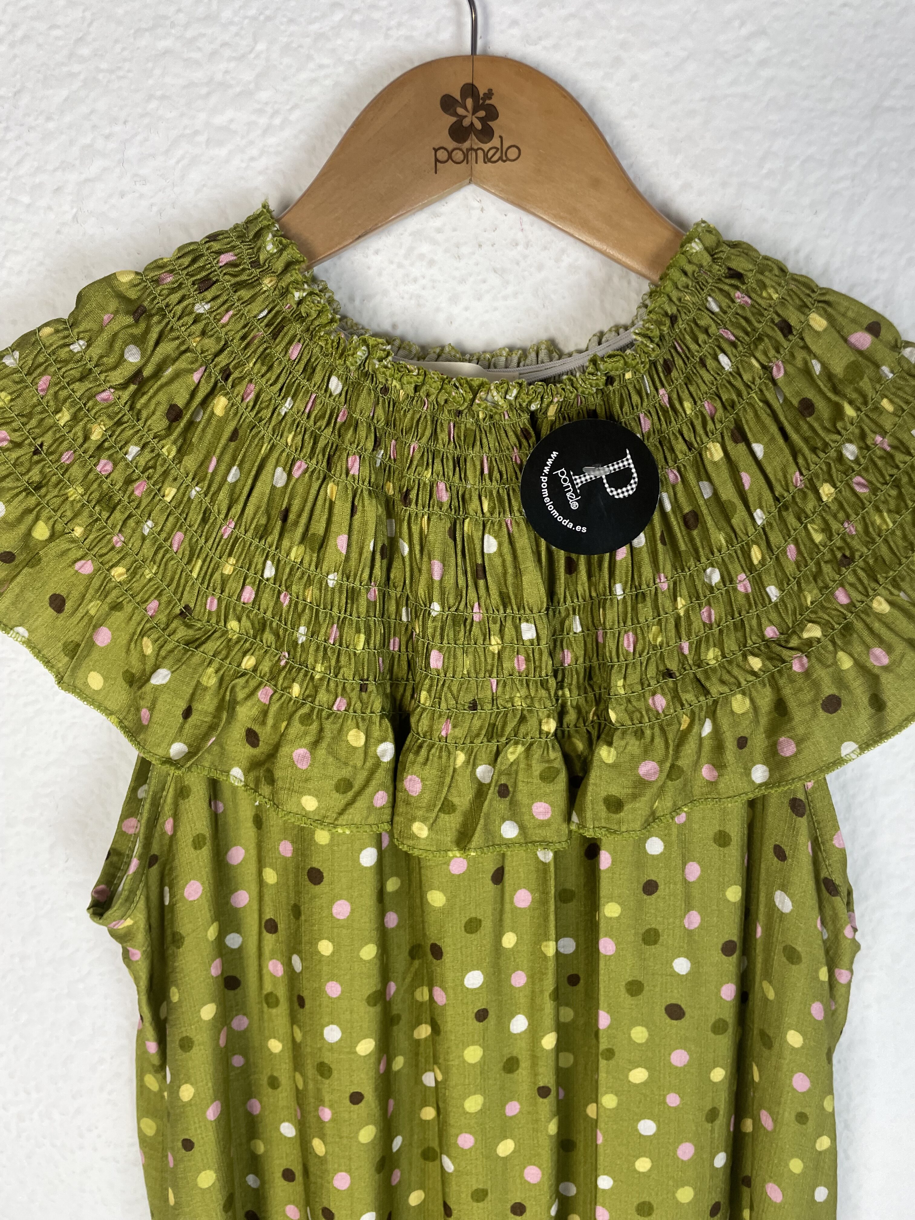 Sé el primero en valorar “VESTIDO CUELLO NIDO DE ABEJA LUNARES TONOS VERDES”